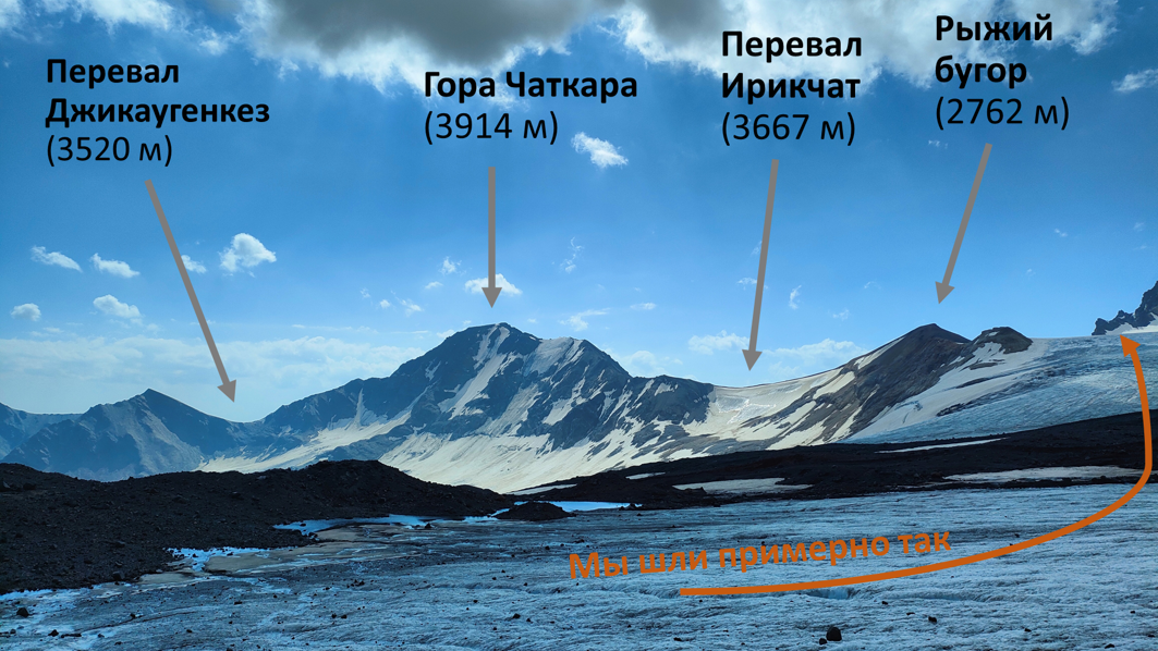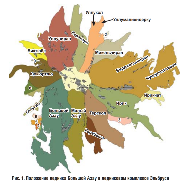 Смотрим дальше, и получаем просто мега-спойлер (я даже удивлена, что никто не пробил поиск по этому фото), ведь таких мест, как верно писали в комментариях, не так уж много. Это ледник Джикаугенкез, на официальных картах часто обозначаемый как Чунгурчатчиран (http://media.geogr.msu.ru/Library/2010/Vasilchuk_Chizh_Bud_Mukh_2010_Azau_Retr.pdf).