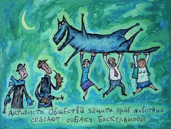 "Представляете мой дорогой" - сказала она - "Эти идиотки из "Бициклов Челси", вместо Собаки Баскервиллей, поймали на болоте кокера Снуппи, этого дурачка доктора Мортимера, которого вы спустили с лестницы" -.
