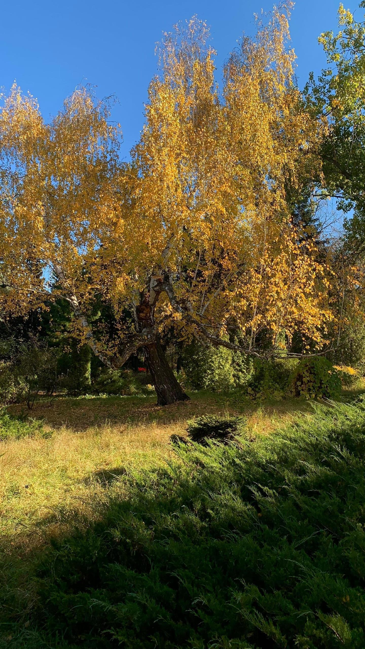С середины сентября по октябрь у нас прекрасно, почти как в апрелемае, только тогда вокруг свеже-непыльная зелень, а в очей очарованье много охры, золота и, само собой, багрянца.