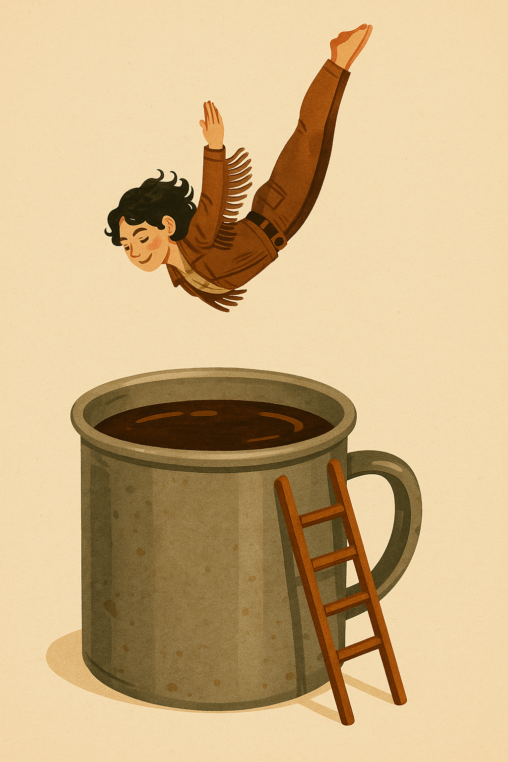 Видимо, героиня хотела не выпить кофе, а нырнуть в него, типа такого: