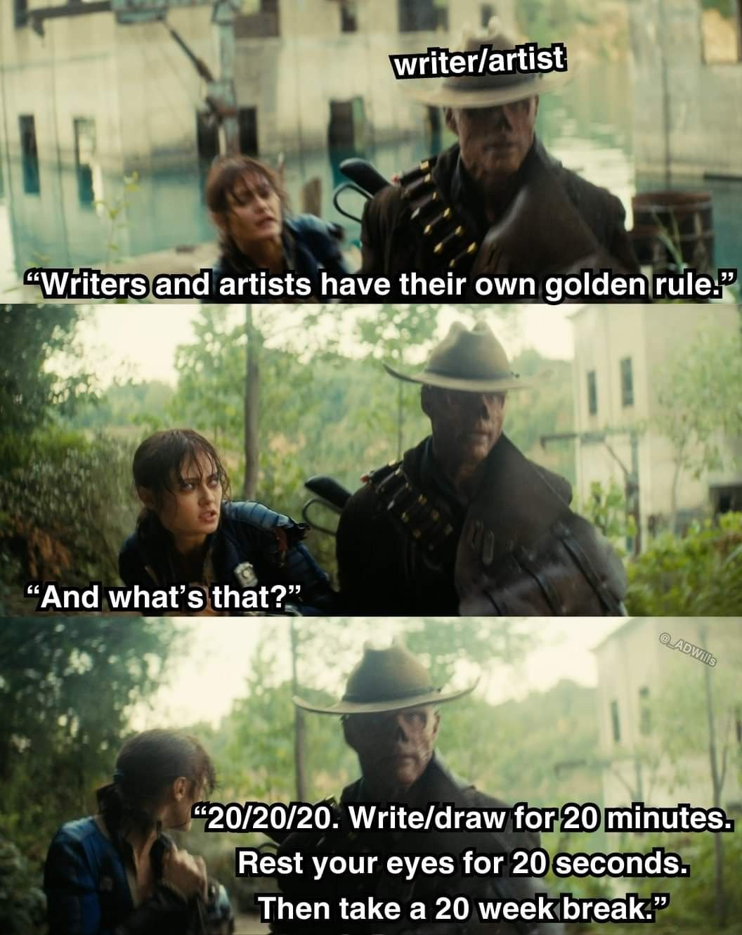 — 20/20/20. Рисуй или пиши 20 минут. Дай отдых глазам на 20 секунд. Затем сделай перерыв на 20 недель.