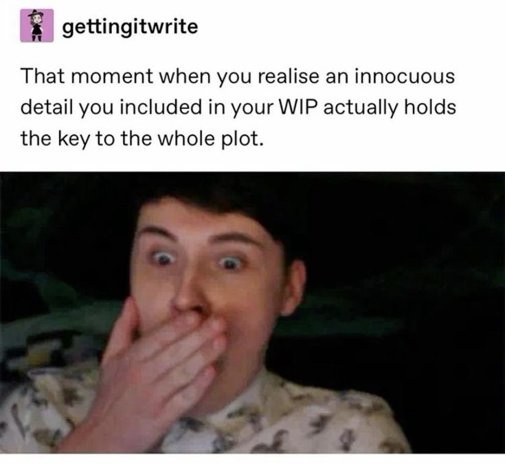 Момент, когда вы осознаете, что безобидная деталь в вашем незавершенном произведении (впроцесснике?) на самом деле содержит ключ ко всему сюжету.