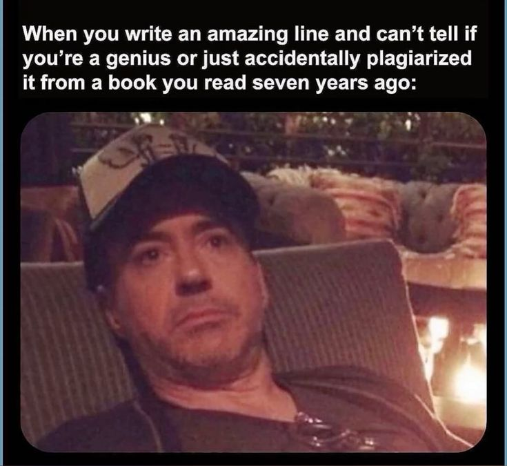Когда ты написал восхитительную строчку и не можешь точно сказать: ты гений или просто случайно сплагиатил её из книги, которую читал семь лет назад.