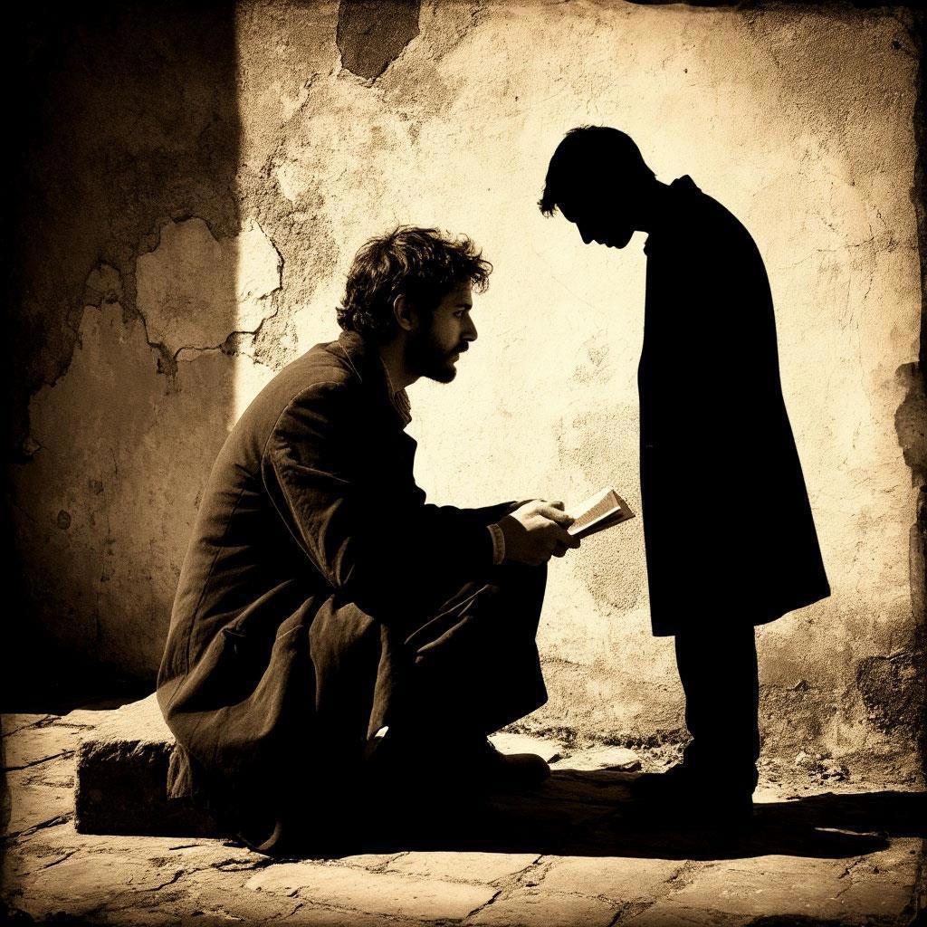 Черная тень, пляшущая на стене от каждого его движения, и от колебаний свечи.