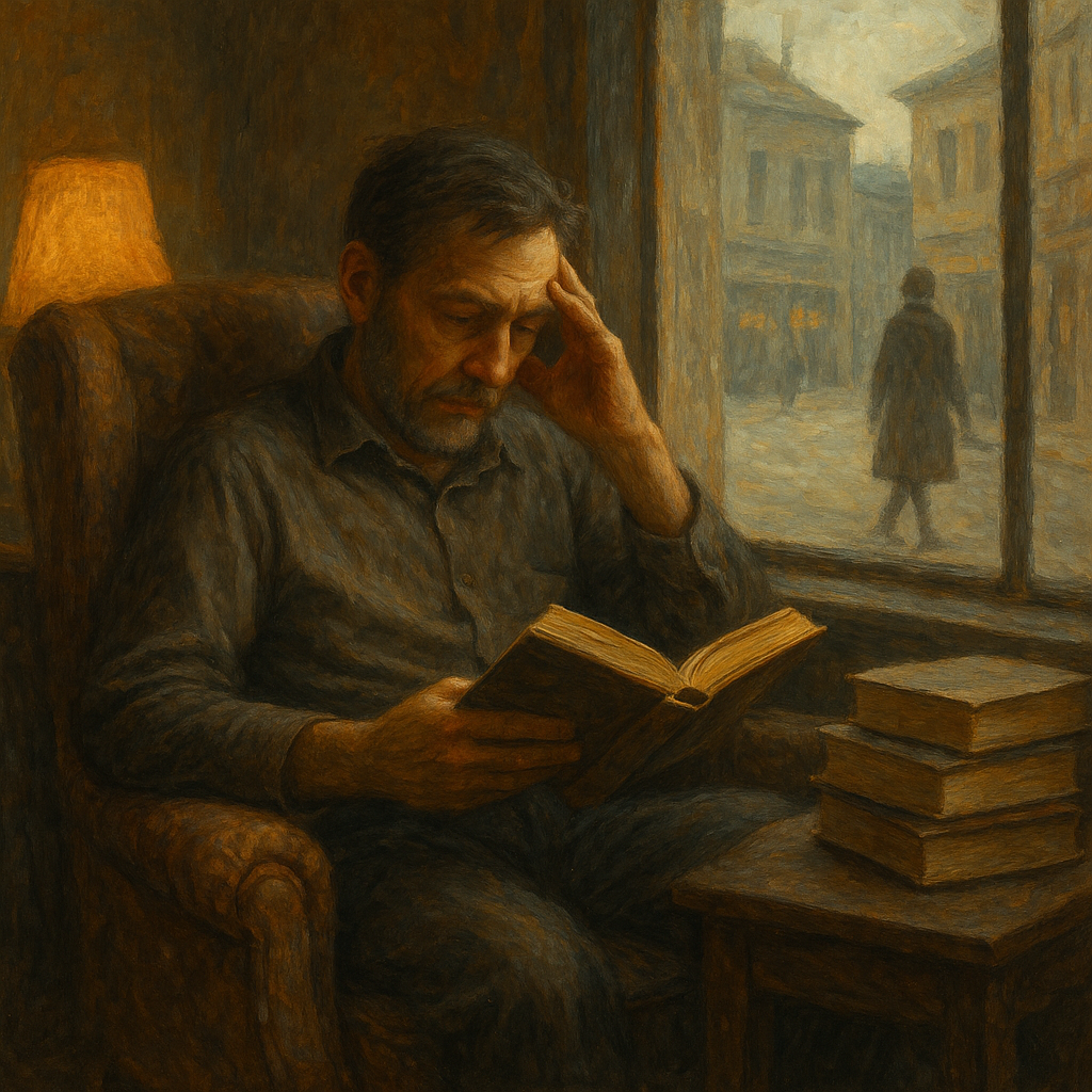Реальность стучала в его дверь редко, и он научился не открывать. Книги были надёжнее. Они не требовали от него участия, лишь позволяли прятаться — укрываться от ветра, гулявшего в настоящем.