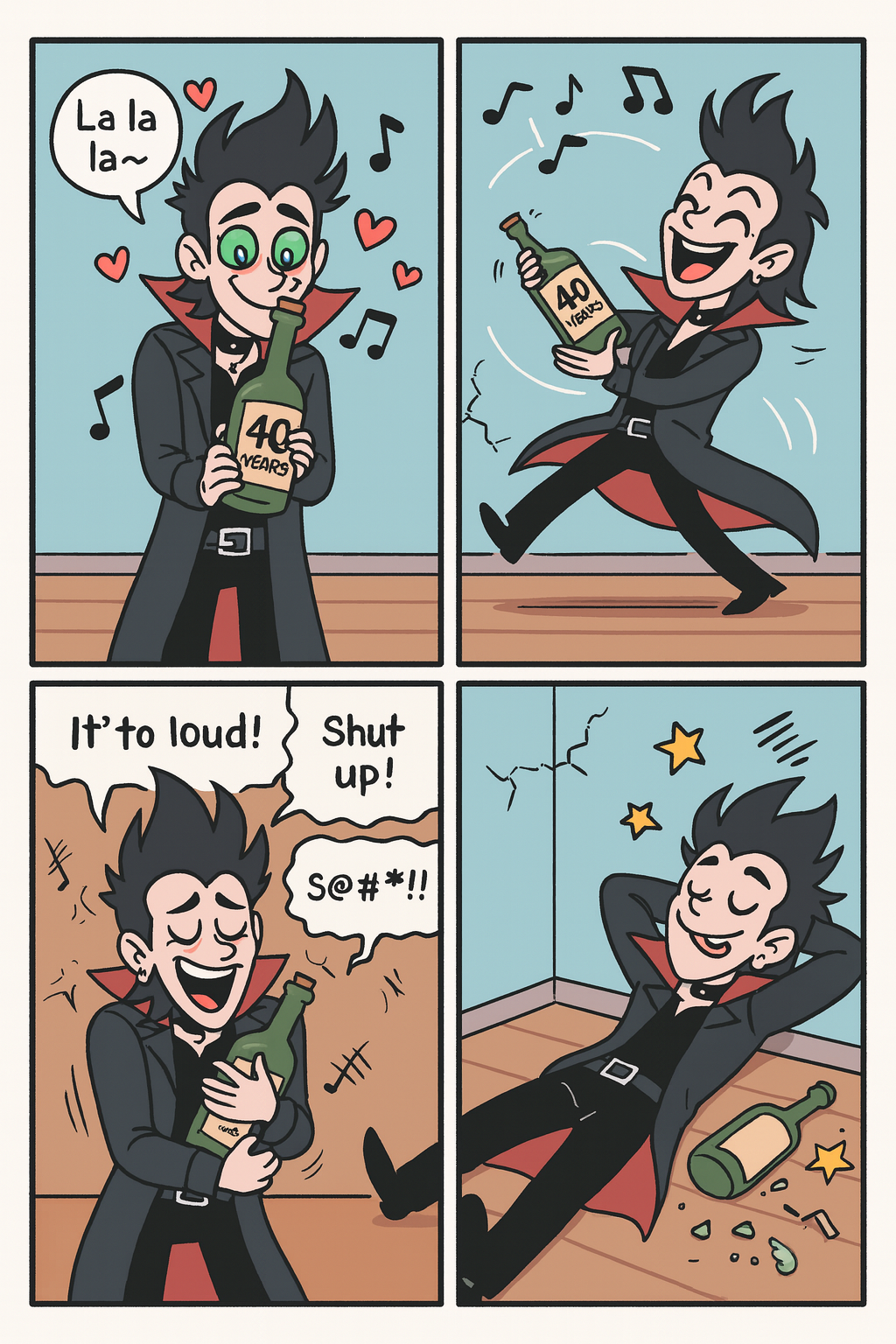 (Если услышите где-то любовные серенады Мистера Рок-н-Ролла из моей одноимённой истории https://author.today/work/477990, посвящённые портвейну с выдержкой 40 лет, лучше убегайте и запритесь в бункере)