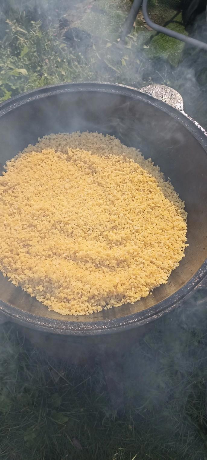 И так, маш подоспел, можно фигачить булгур (не забываем, что его, как и рис, нужно промыть в пяти водах, чтобы ушла вся муть, а с ней и лишний крахмал, из-за которого крупа слипается). Я на килограмм мяса использовал килограмм булгура, норм соотношение.