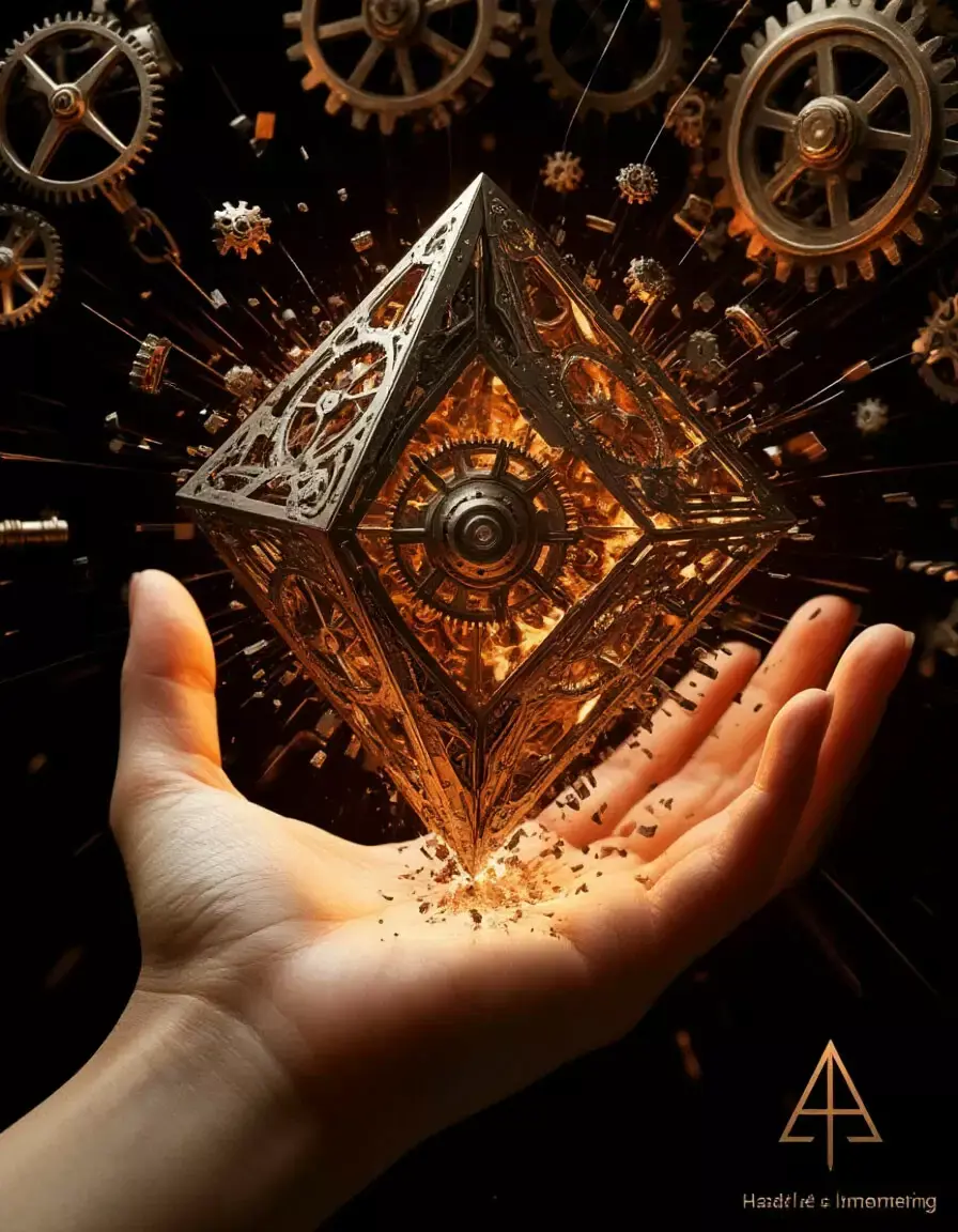 Петь не умеет, а танцует. Висит в воздухе, крутится и поднимается выше, а затем так же плавно опускается ниже. Шестеренки вертятся, грани расходятся в стороны и продолжают завиваться незнакомыми глазу узорами.