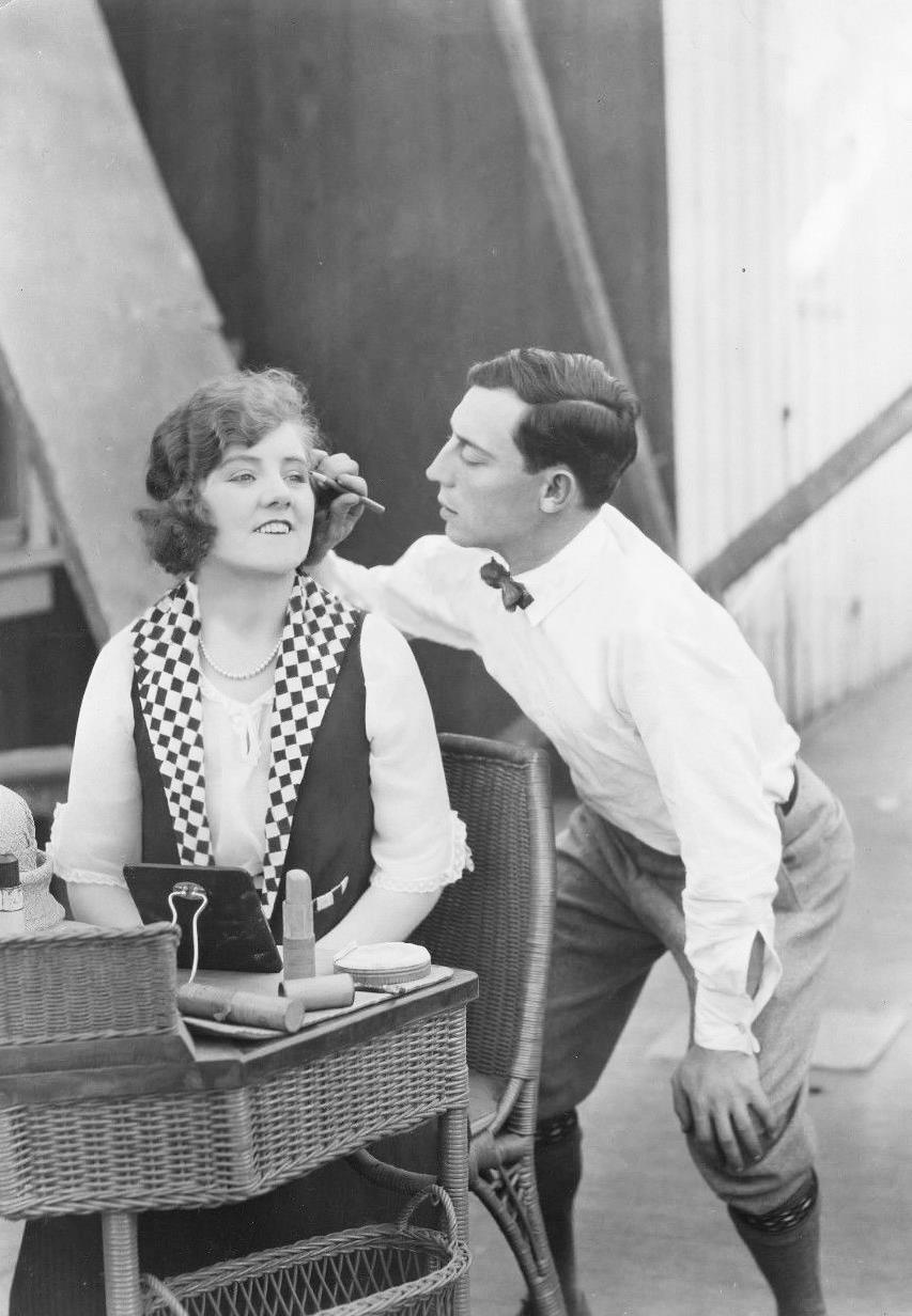 В те времена с Бастером Китоном, красавцем, выдающимся атлетом и просто гением снимались простые на вид девушки, и жаловались, бывало, что не жалеет он актрис. Да уж думаю, упоротый артист и от коллег ждал упоротости и хотел для них лучшего: чтоб дама как следует роль сыграла, а насколько она пострадает — не так важно. Ну то есть уважительное профессиональное отношение, ровно такое же, как к себе самому, и предоставление всяческих возможностей. Не всем нравилось.
