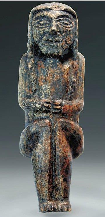 Вообще уже определено, что часть металлических и других изделий не местного происхождения. Это стеклянные и янтарные бусины, части кольчуг и прочее. То есть была активная торговля сихиртя с соседями. Было бы странно, если было бы иначе – вроде бы в этих местах месторождений железа вроде бы нет. Хотя может быть просто пока не нашли? Ведь климат мог за тысячелетия измениться. Так как можно поручиться за то, что сихиртя не делали свои железные изделия из болотного железа? Возможно, что они покупали у южан крицы, а потом из них сами ковали свои поделки. С происхождением многих находок ещё предстоит разбираться. Например, большое волнение среди специалистов вызвало вот это скульптурное костяное изображение сидящего человека: