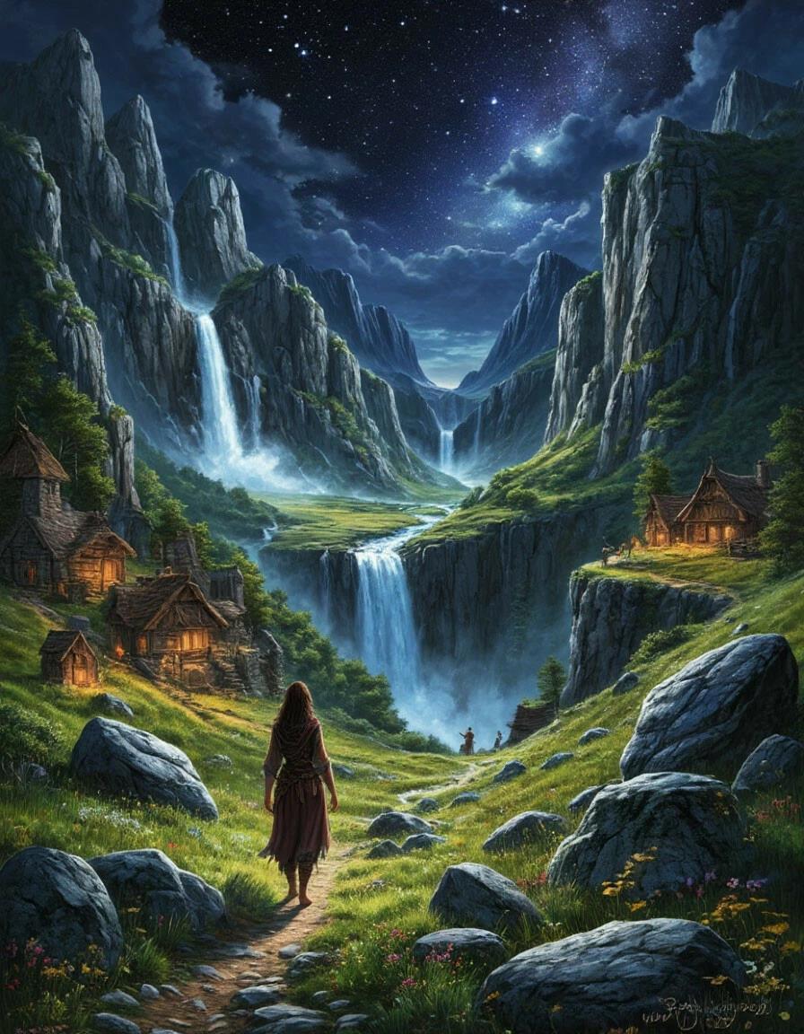 Сказочница ходила по новому миру, заглядывая под каждый валун, слушая как поют струи водопада и что шепчут по ночам крупные звезды на чёрном небе.
