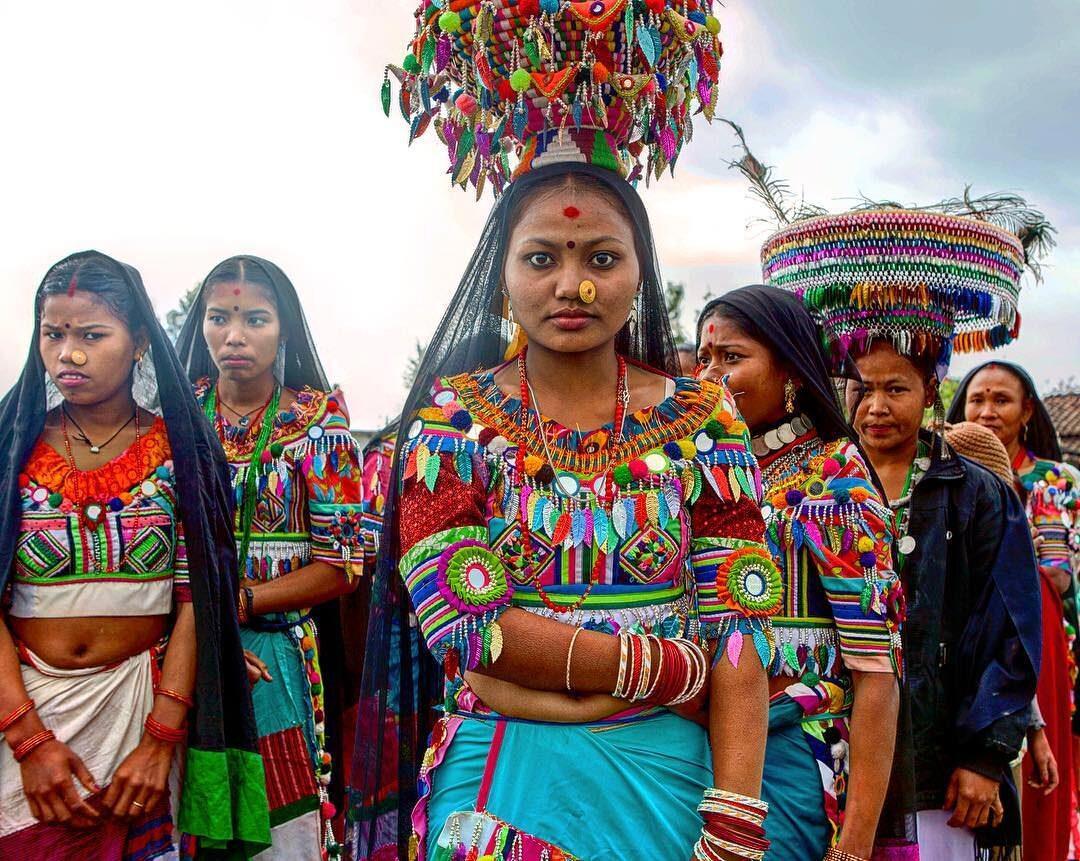 А напоследок дарю прекрасную картинку национальных нарядов тхару - современного народа, считающего себя наследниками шакьев. На мой взгляд тут головные уборы очень будят воображение в качестве яркой, необычной детали для книг.