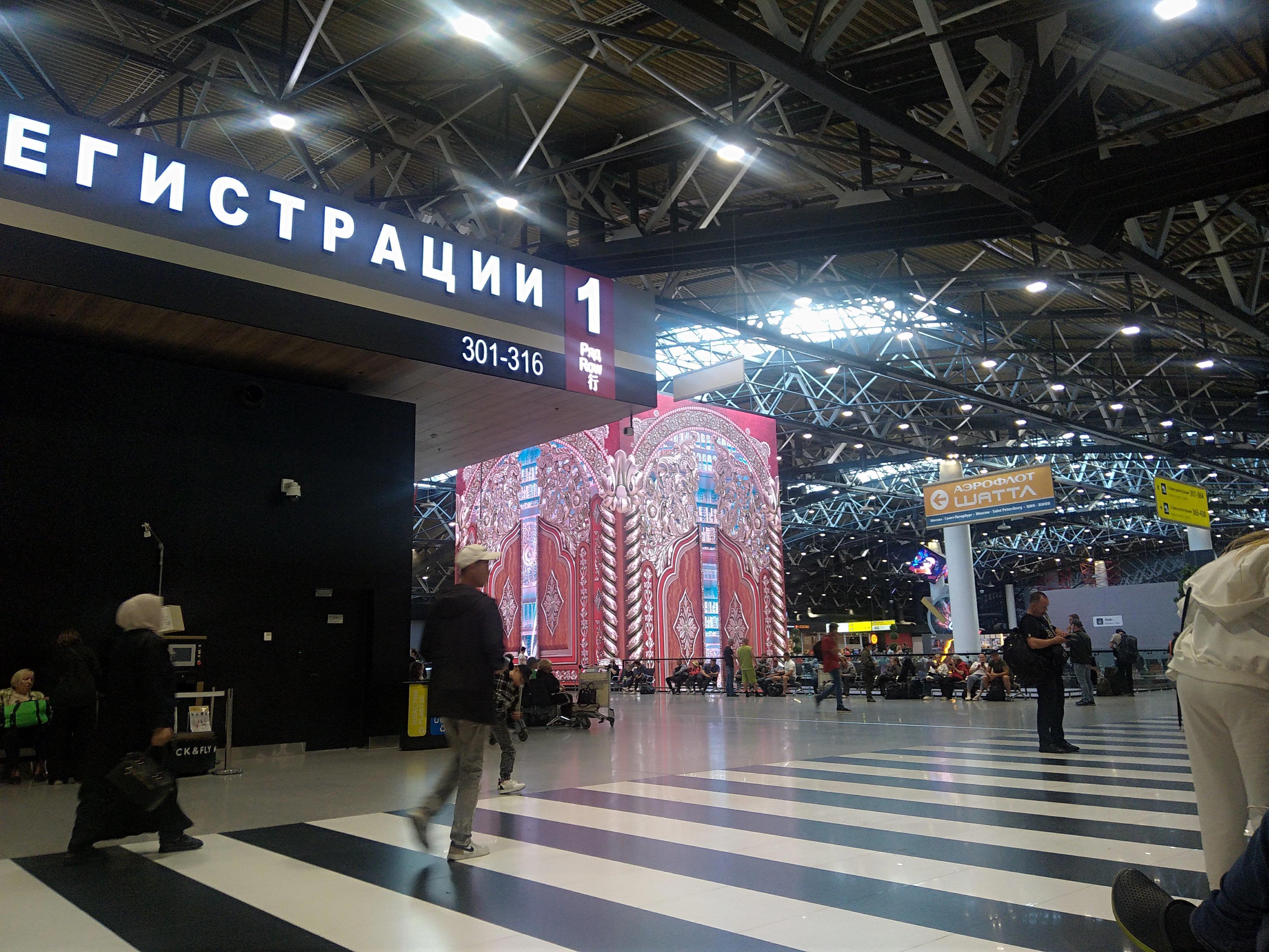 Никогда не умолкающий гул множества голосов, детские крики, гул колес чемоданов по гладкому полу... Запах дорогущего кофе из множества кафешек... Женский голос, на русском и английском языках объявляющий рейсы по трансляции, периодически требующий названных пассажиров пройти в комнату "углубленного досмотра"... Отсутствие свободных кресел в залах... Очереди на стойках регистрации...