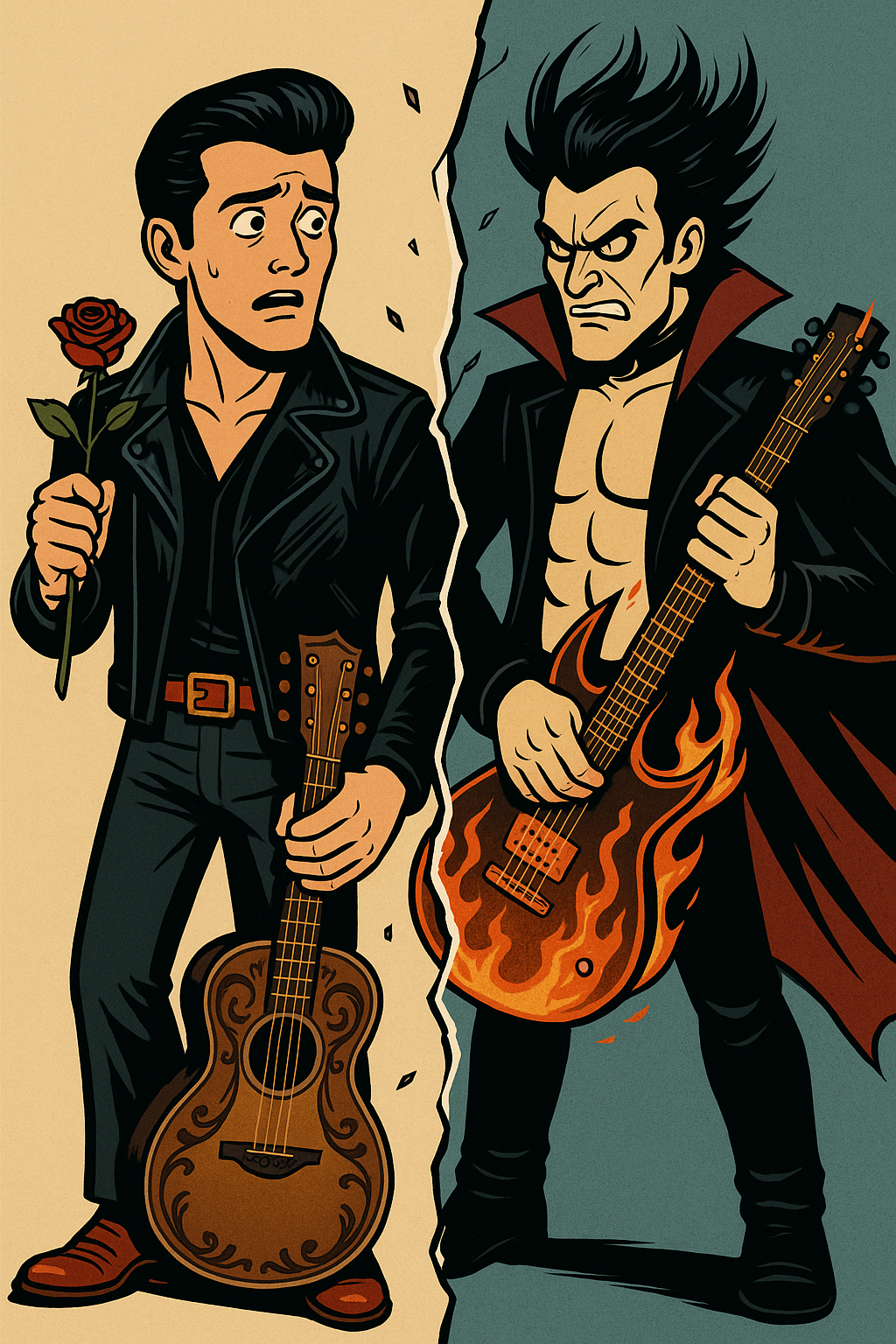 Автор: Владислава АзисПоведаю заранее о ментальных проблемах Мистера Рок-н-Ролла, но распишу их лаконично (а полное описание его сумасшествия будет здесь https://author.today/work/477990). Жил да был весёлый танцор Рокабилли — музыкальному жанру рок-н-ролл и всем его производным в виде хард-рока и хеви-метала исторически действительно предшествовал более безобидный и позитивный жанр рокабилли, — который обожал делать людей счастливыми и видеть их радостные улыбки. Но спустя время люди нарекли его «порождением дьявола» и вытерли ноги о его душу. Люди презрели смысл его жизни, обвинили его в том, что он вредит их душам... Люди разрушили его психику — и, дабы выжить, он стал тем, кем они хотели его видеть.