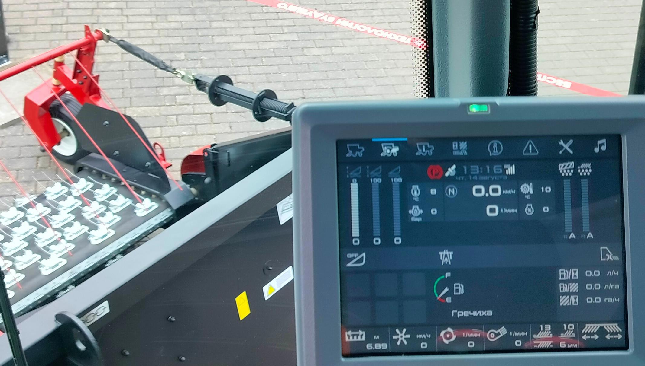 Крутейший комбайн, в кабине великолепный обзор, но по объяснениям механизатору нужно только нажать пару кнопок и тот сам пойдет работать.