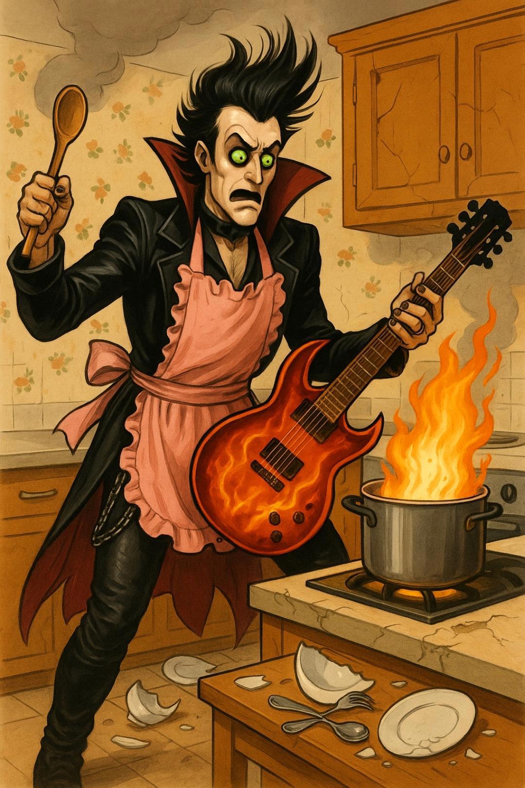 Он научит вас не просто варить пельмени, но ещё и превращать это в настоящее фаер-шоу самых безумных рокерских концертов