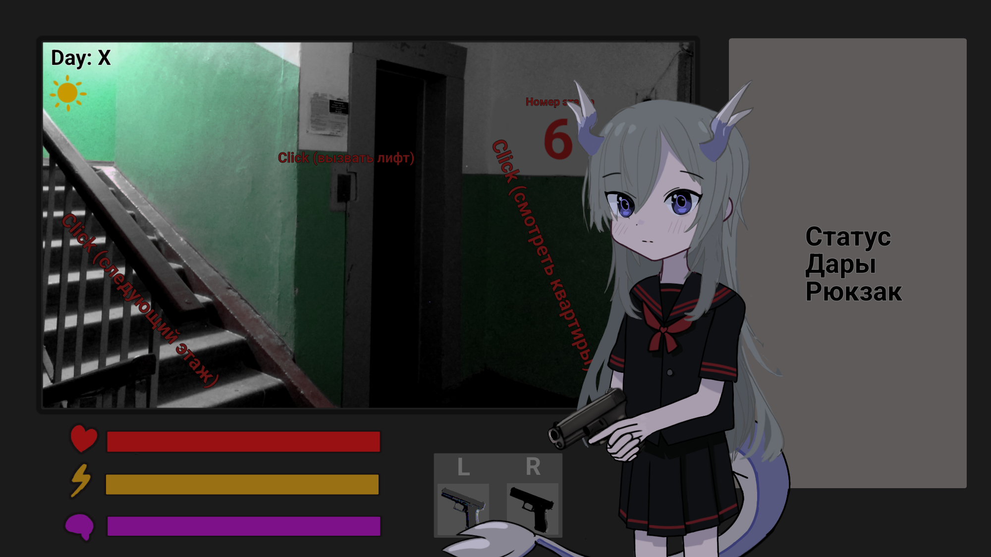 «Сможете ли вы выжить в лабиринте советского подъезда? Передвигайтесь по бесконечной лестнице и исследуйте квартиры, чтобы найти припасы и оружие для противостояния монстрам. Приобретайте дары-мутации и наблюдайте за тем, как эволюционирует героиня. Возможно, в пути она сама станет чудовищем и начнёт охотиться на людей».