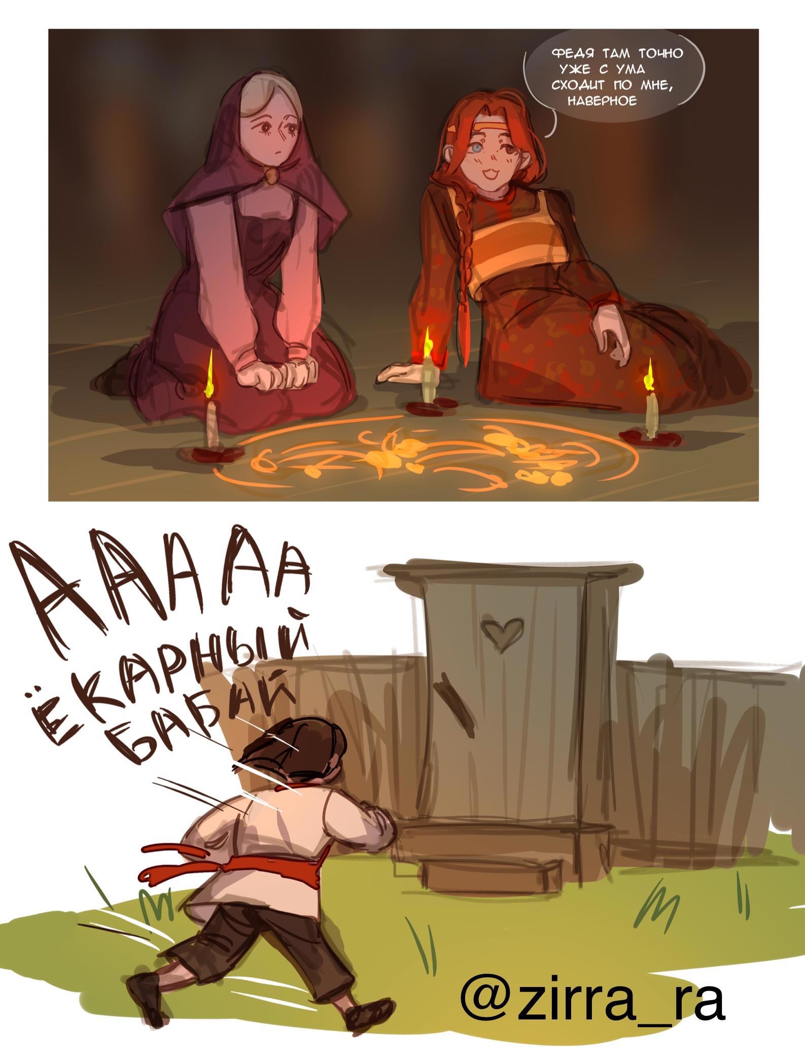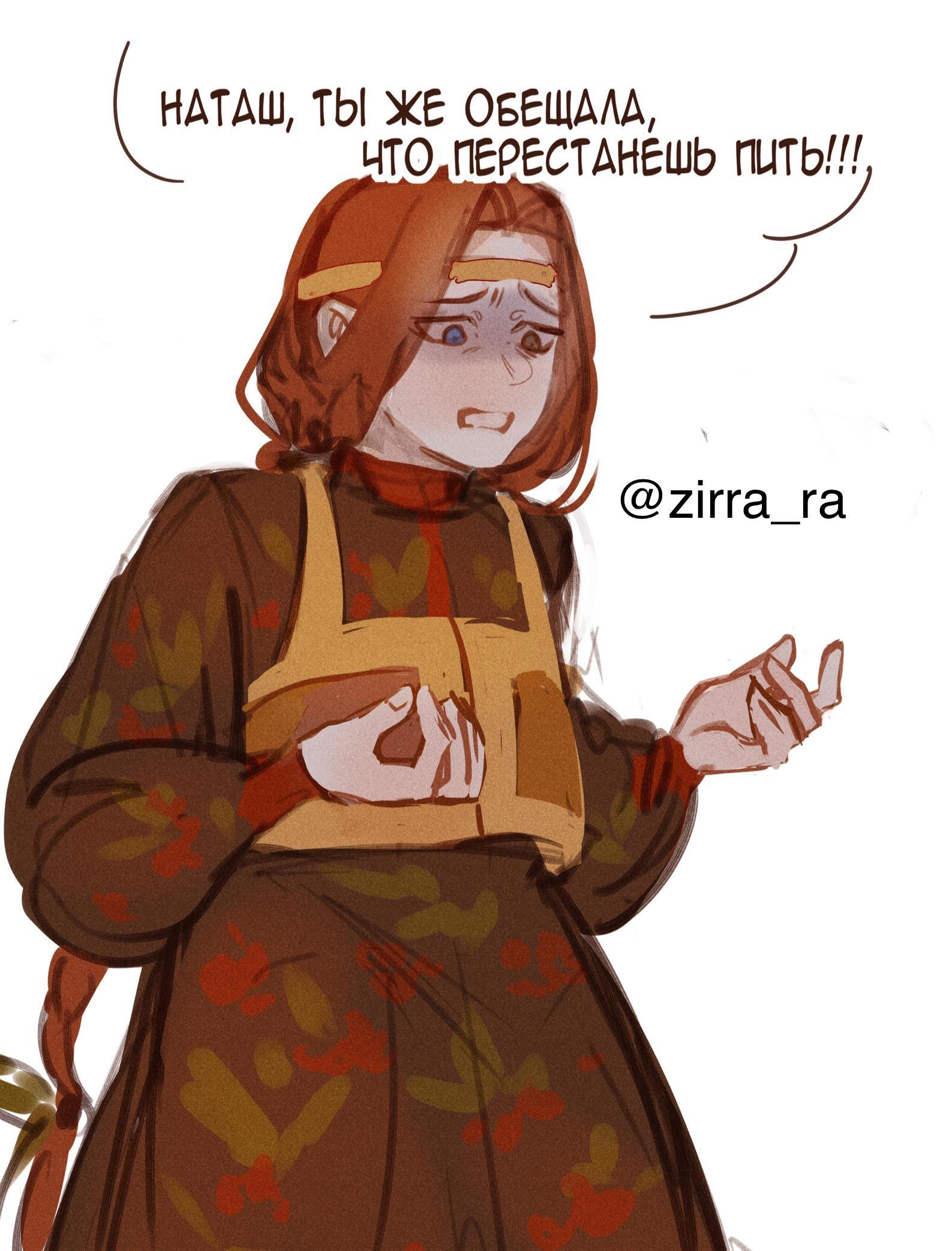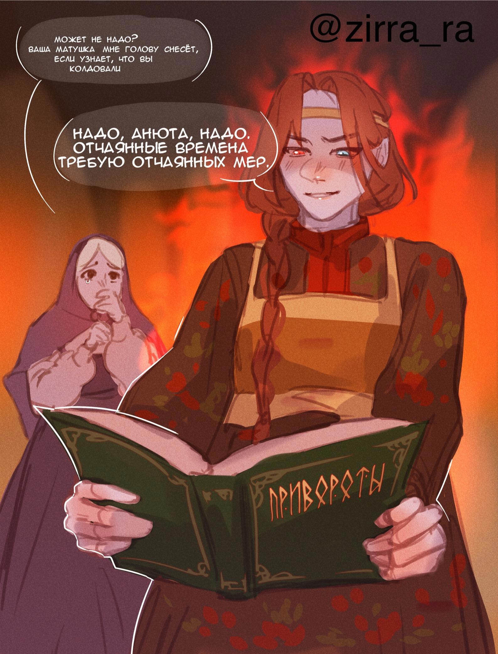 «Боярская пати» как и все эти иллюстрации придумала и нарисовала ZIRRA_RA. Девушка не только рисует, она автор комикса «Искра», а ещё человек с хорошим чувством юмора, который не обходит стороной и её собственное творчество. Рисунки в посте — карикатуры на персонажей комикса «Искра».