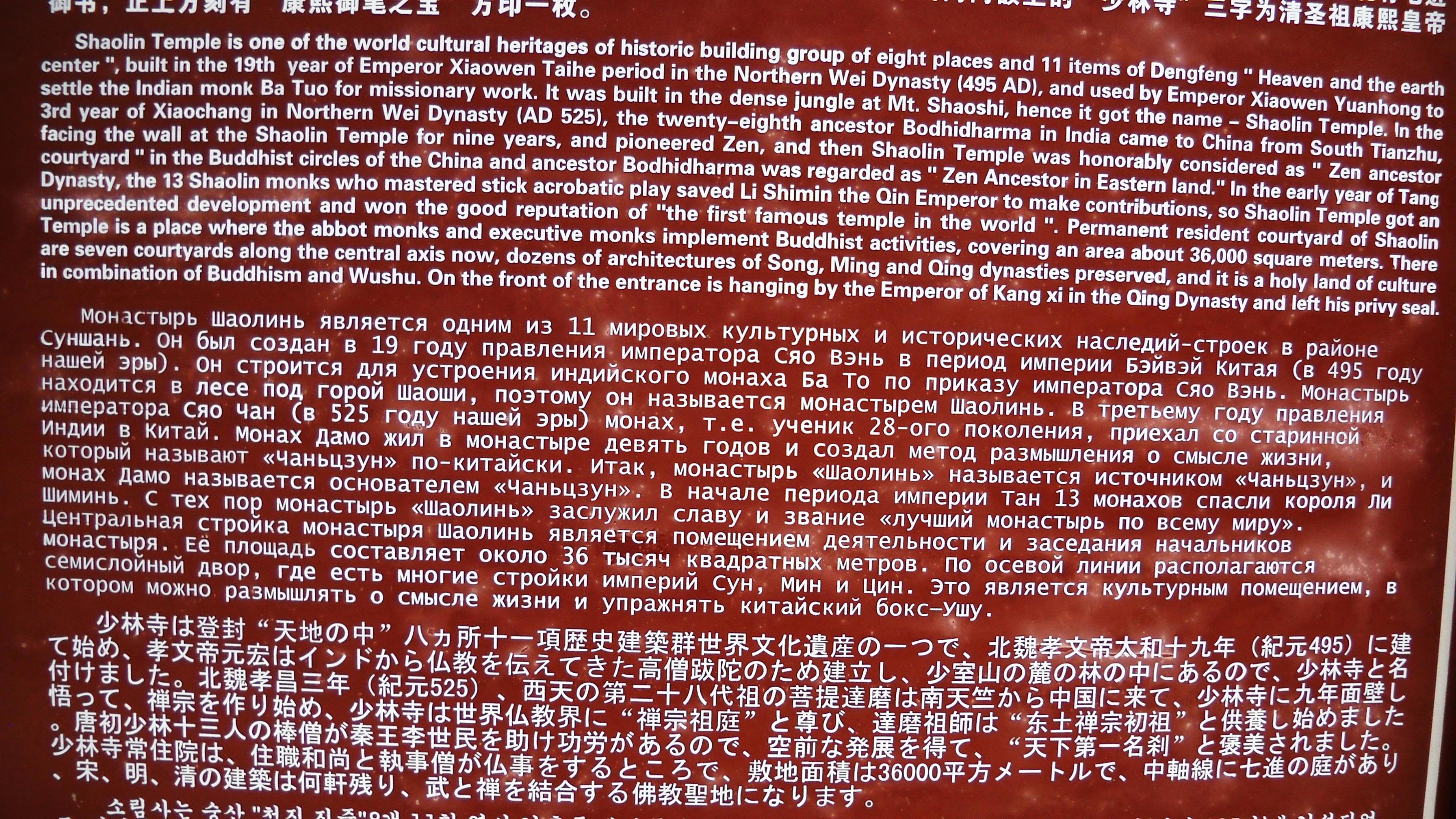 Мы пришли к священной реликвии - статуе Дхармы. Переводить не буду, вы же шпрехаете нормально. Нет? Ну лан... Кароч, чел один медитировал в пещере долго, очень долго.... и настолько прозрел, что создал целое учение. В общем-то Китай, какой он есть и результат его медитации. Мораль - медитируйте, друзья! И чем дольше, тем лучше!