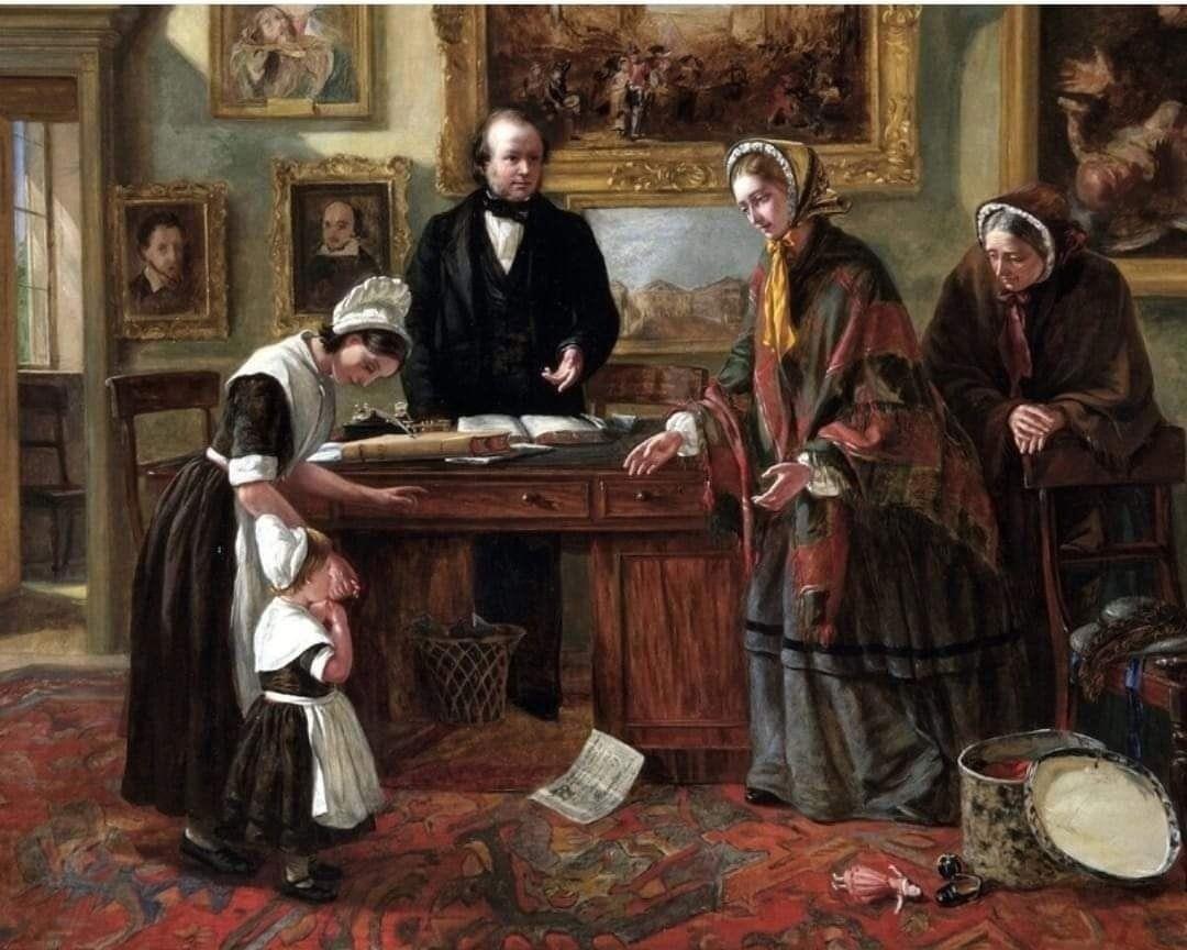 ⠀Повзрослев, Джон Браунлоу устроился в Воспитательный дом секретарем, а спустя много лет стал его директором. Именно он изображен за столом на картине.