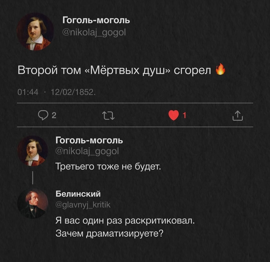 — Да Белинский твой тот ещё пидор. Раздутое ЧСВ, выдаваемое за авторитет. Слов умных много, по делу хуй. У нас на районе таким зубной массаж прописывали.