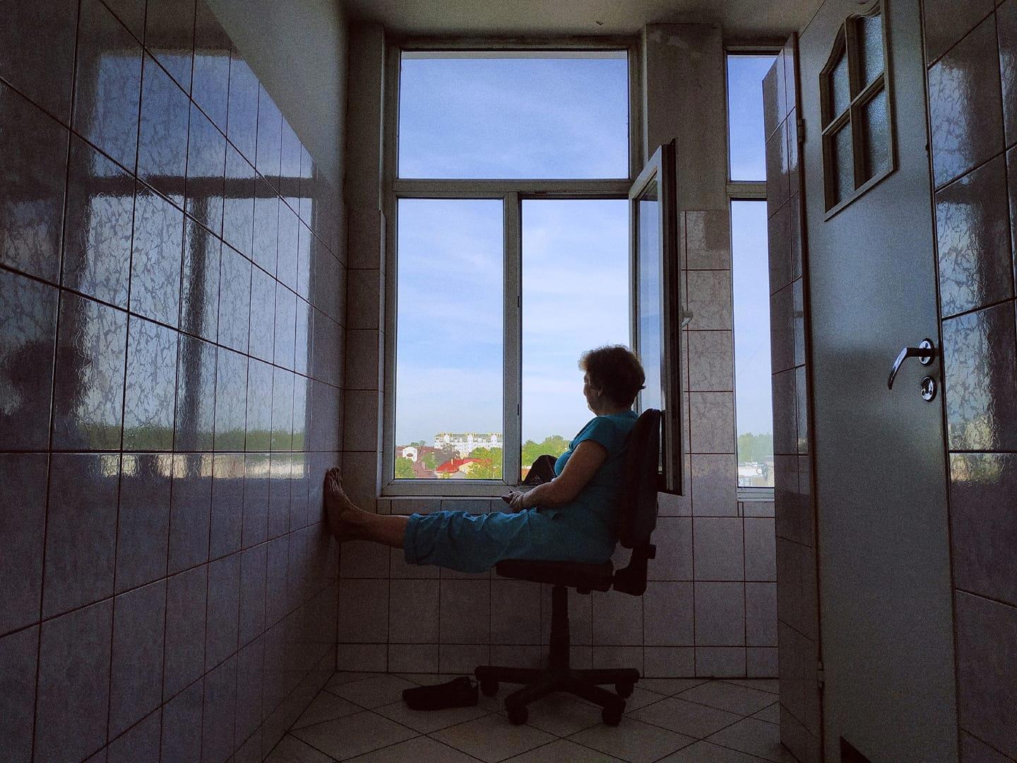 Это было настолько красиво, что я испросила разрешения заснять мобильный кадр. И, получив это разрешение, взяла - и засняла. Потому что все профессии нужны, все профессии важны. Помните об этом, проходя по свежевымытому полу!