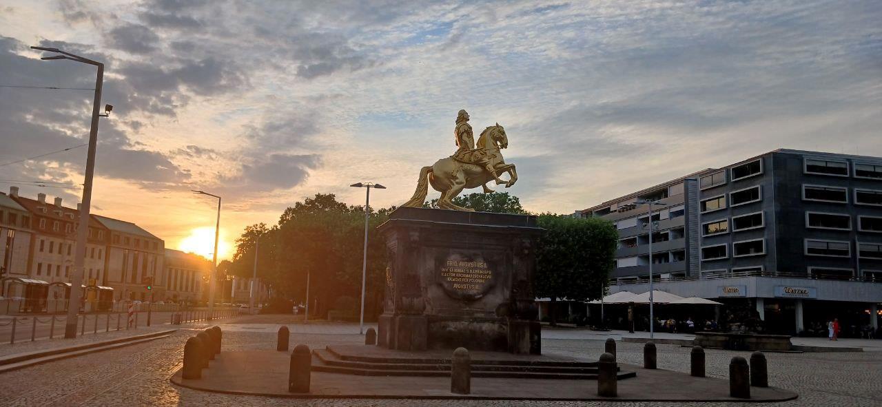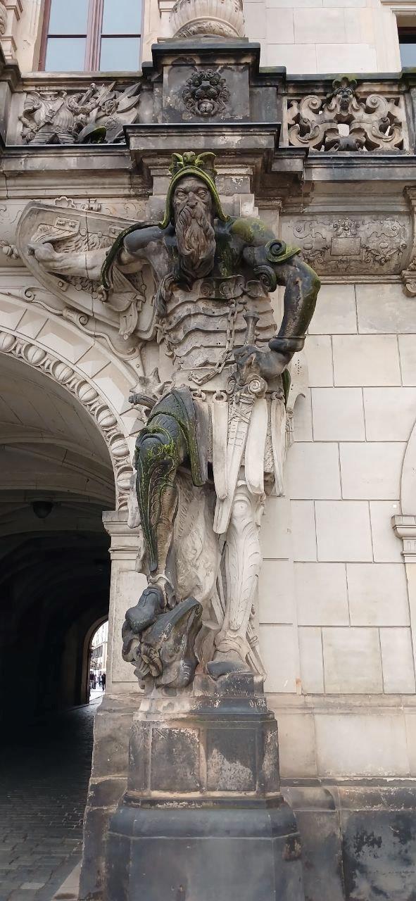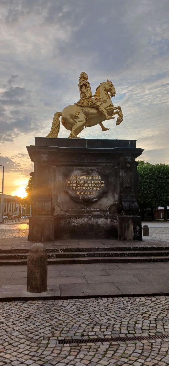 Золотой всадник. Памятник курфюрсту Саксонии и королю Польши Августу Сильному. Между прочим, был союзником Петра Первого в войне против Швеции. Основатель Дрезденской галереи.