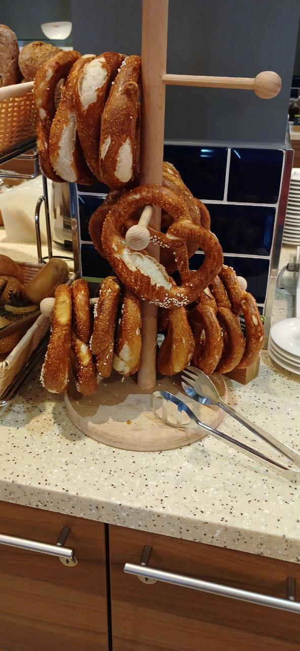 В гостинице на завтрак были традиционные бретцели. Это что-то вреде калачей или кренделей. В восточной Германии они солёные. Есть особый сладкий берлинский вариант. И, по-моему, он вкуснее.