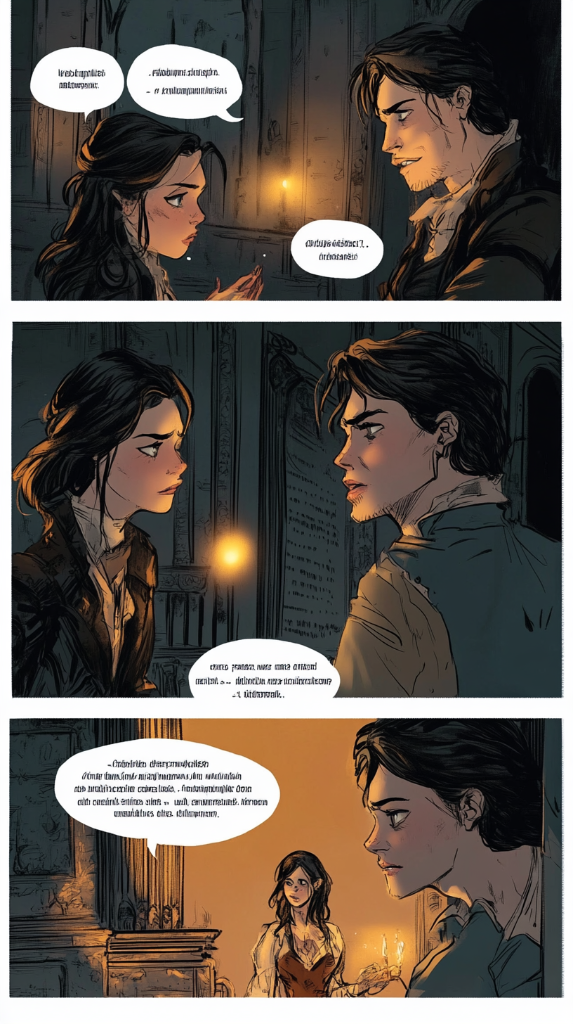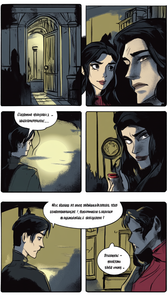 Ну решила попросить нейросеть сделать комиксы про вампиров и любовь НА РУССКОМ ЯЗЫКЕ, а мне она такое кидает
