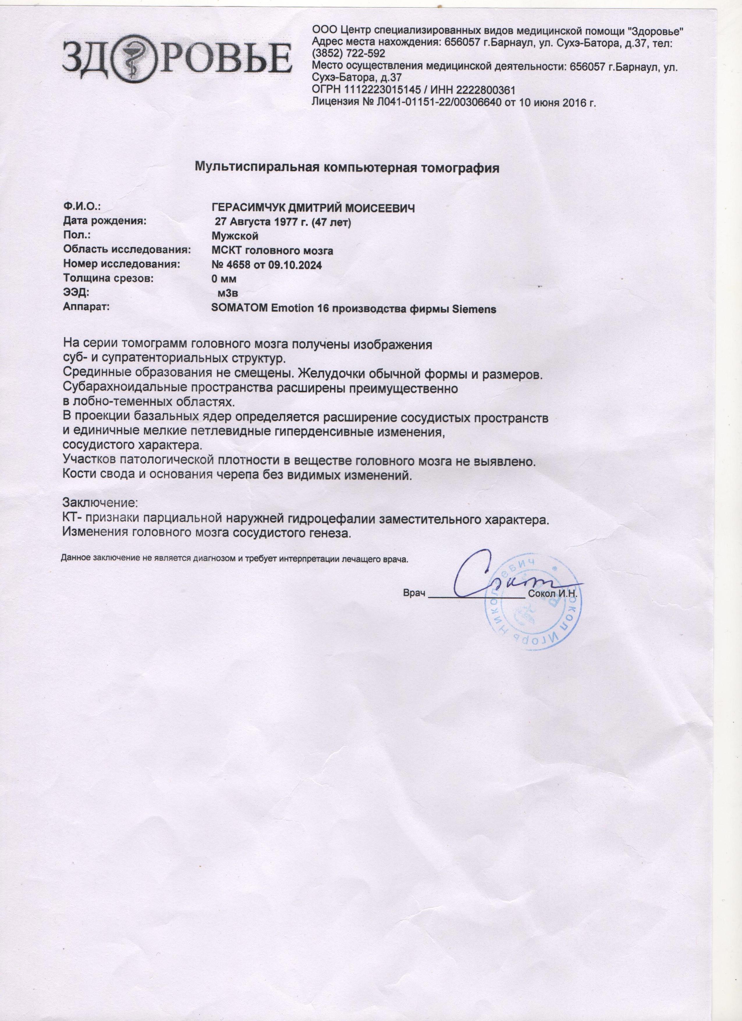 Был на днях на приёме у врача невролога. Вот он мне и сказал, что я здоров: по записям в результатах компьютерной томографии моё здоровье в пределах нормы.
