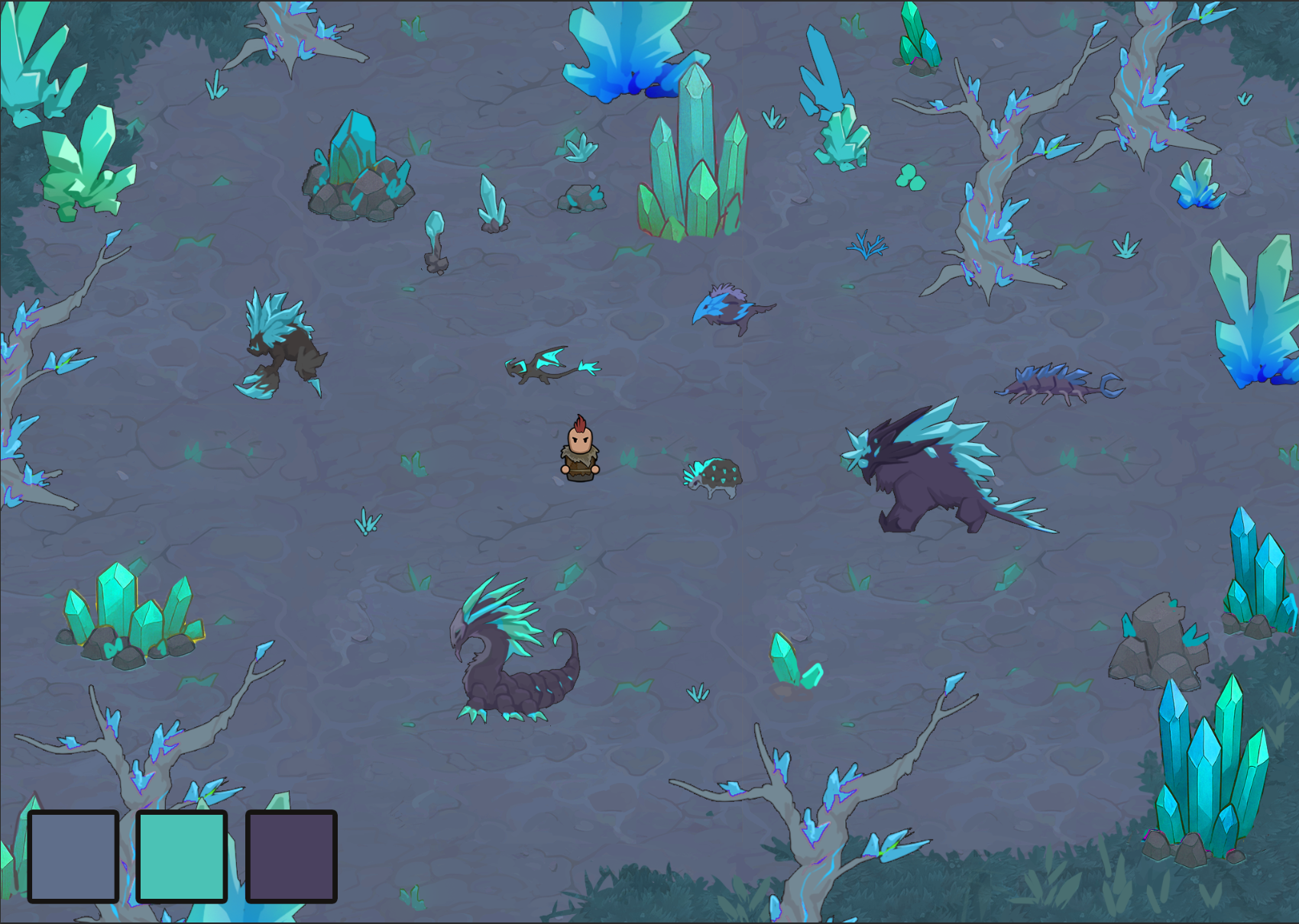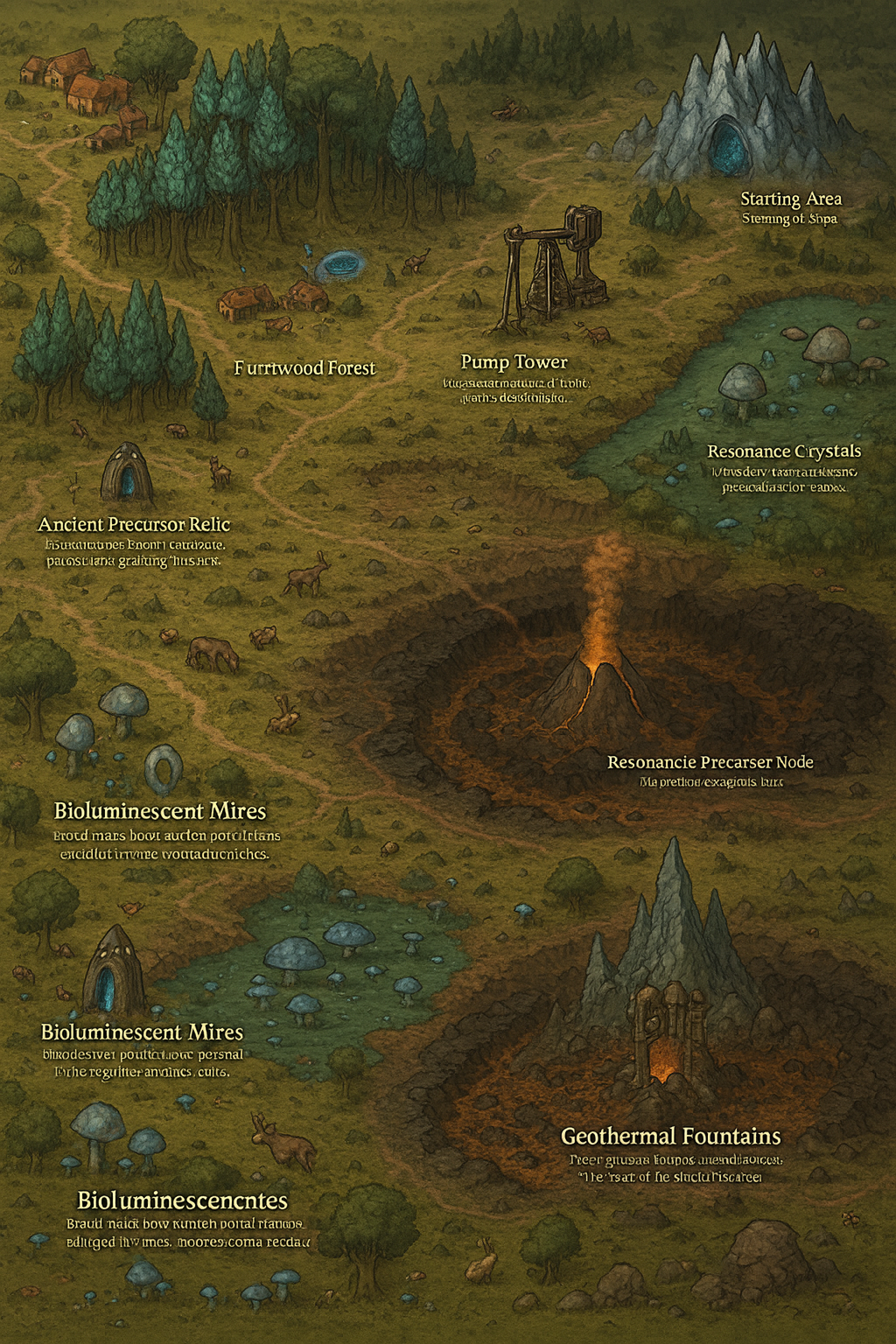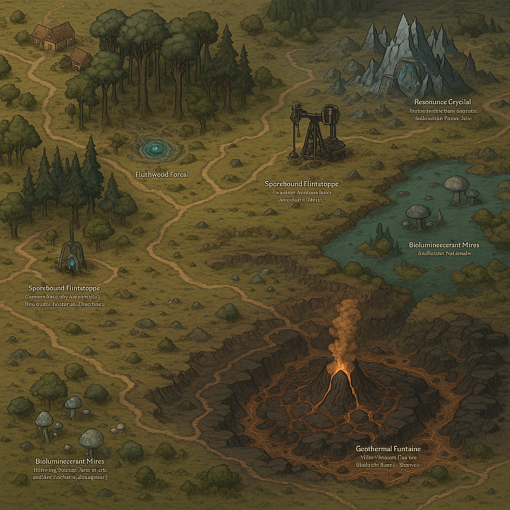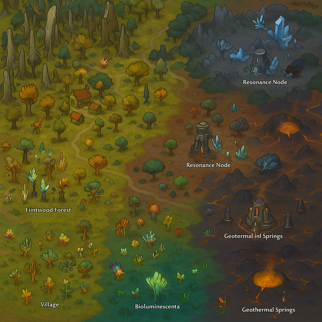 А это первичный концепт одного из инопланетных биомов. Они были скормлены нейросетке, но та их практически проигнорила, засовывая привычные, земные деревца.