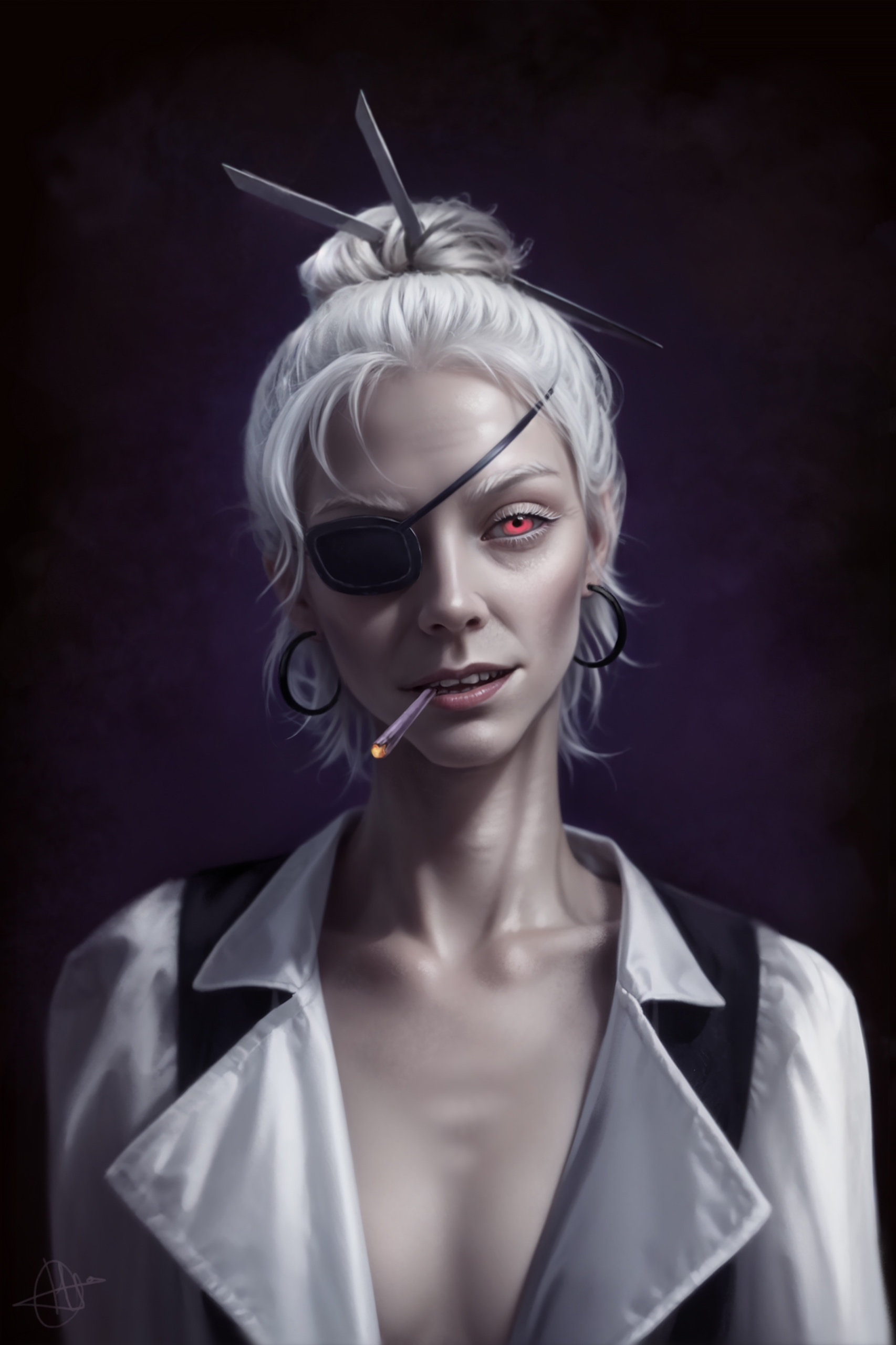 4 - Нисина потеряла глаз в драке с магом Тьмы. После этого горячо знакомый Нисине хирург восстановил ей глазницу и вставил туда магический глаз.