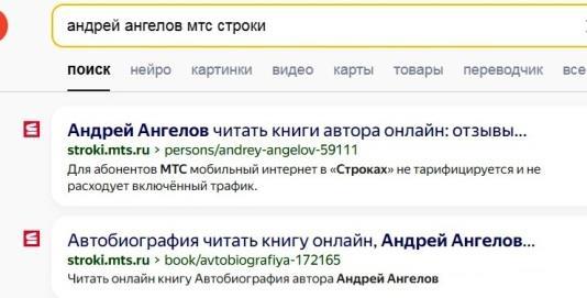 Рис. 4. Всё, что осталось от Андрея Ангелова на сайте «Мтс.Строки», по просьбе самого Андрея Ангелова. То есть: ничего не осталось, кроме кэш в Яндекс.