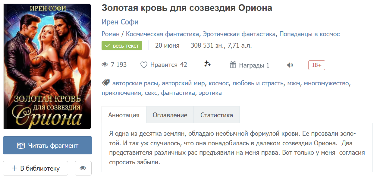 Автор: HabbahenНатолкнулся в боковом рекомендательном виджете на обложку книги в жанре космическом фантастики