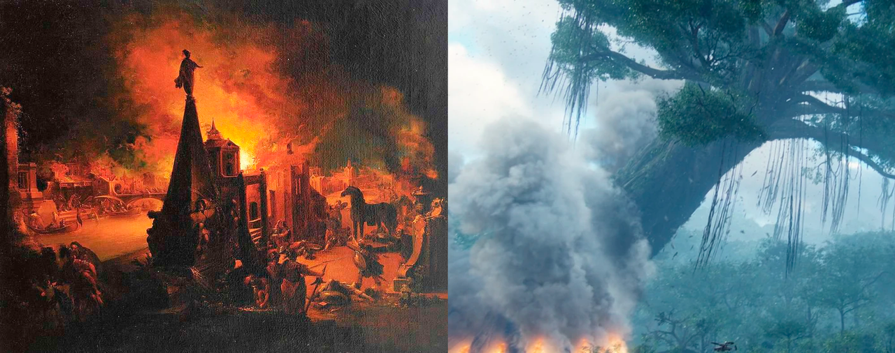 Смерть Гектора от руки Ахилла — падение Дерева-Дома и смерть Эйтукана. Одновременно зеркальная ситуация: смерть Куоритча от рук Нейтири и Джейка.