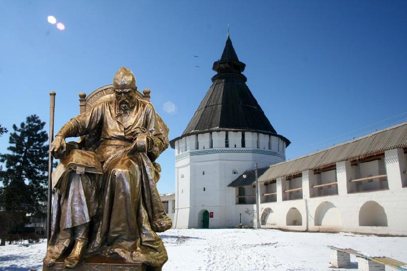 Скульптура Ивана Грозного (скульптор Антокольский) и Астраханский кремль.