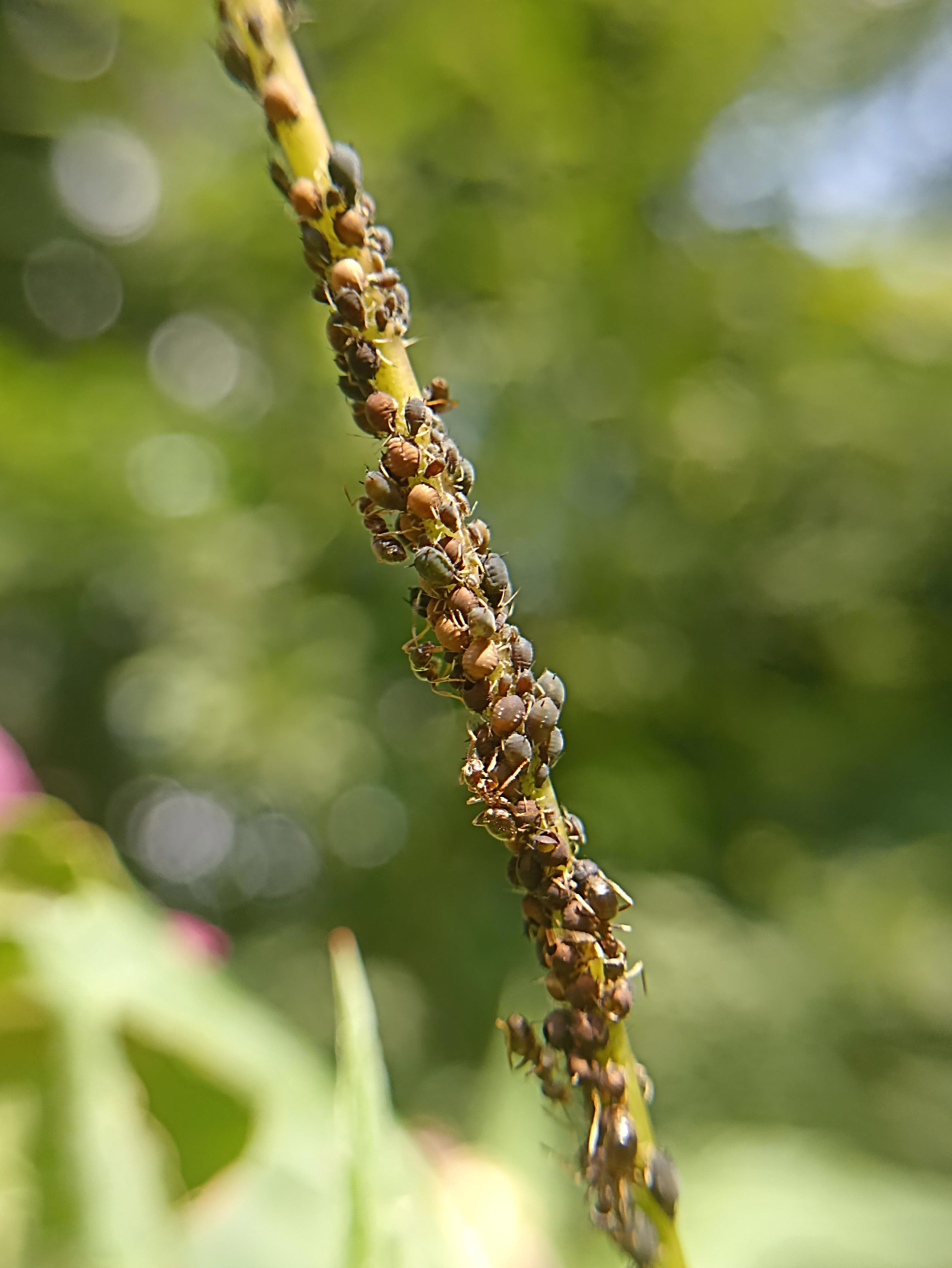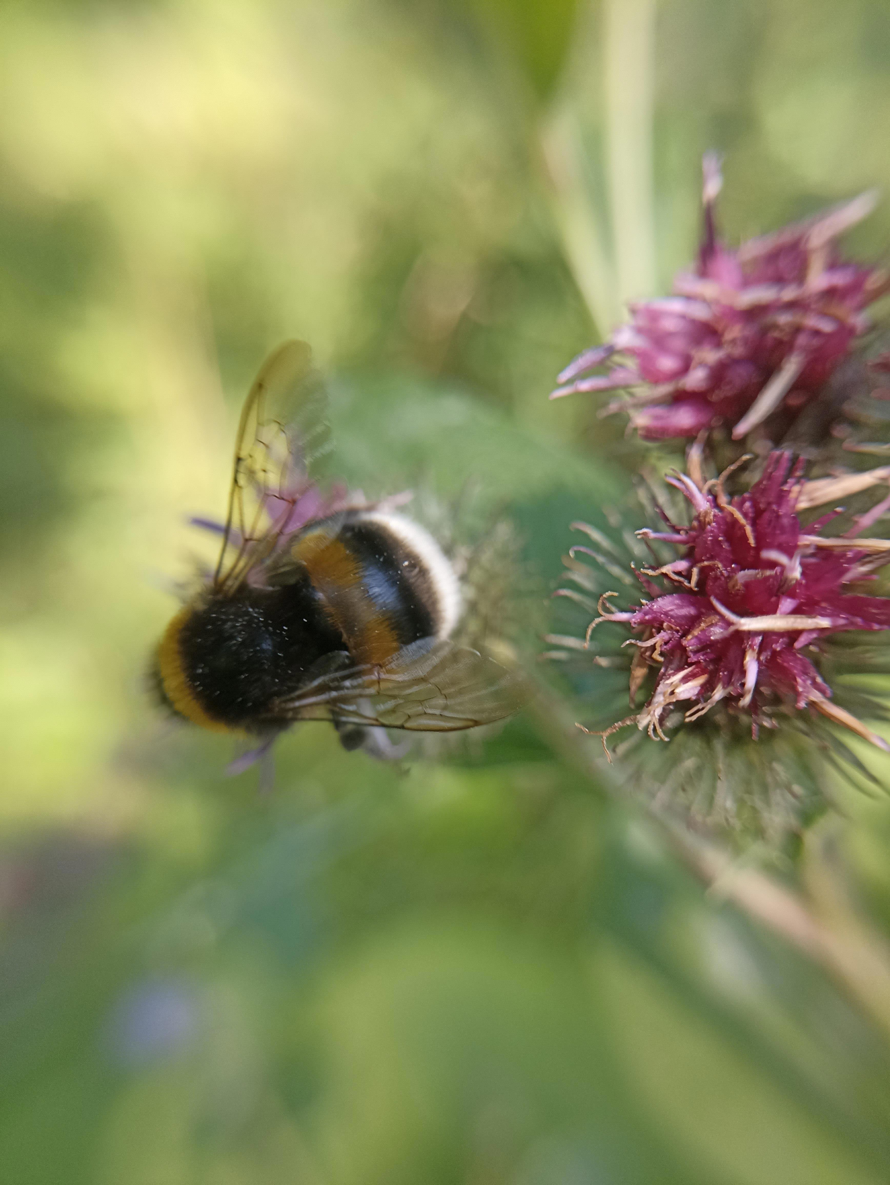 ) я ещё в прошлом году приобрела макролинзу на телефон. Ну и благодаря макролинзе мне удалось заснять сначала журчалок, потом личинок божьих коровок, теперь я переключилась на шмелей