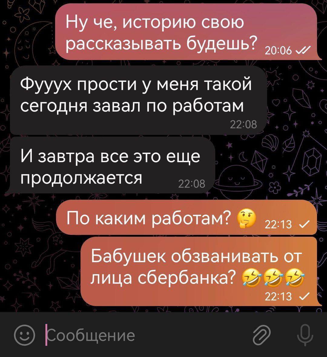 Вы бы слышали эти голосовухи: как умело интригует, этот пониженый голос, эти смешочки томные. Боже, ну персонаж из аниме. И была бы моя психика слабее, я бы потекла.