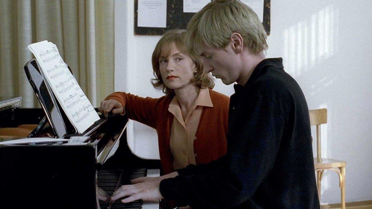 Но потом я пошла по "похожим" и наткнулась на "Пианистку" Ханеке (2001). И вот тут уже совсем другой разговор. Если "Цветения пора" -- это про жизнь, пусть и со сложностями, то "Пианистка" -- это про боль, болезнь и перверсии. Здесь нет хороших героев, только два "сломанных" человека, пытающихся найти что-то в грязной, грубой связи. Эмпатии ноль, зато боли и психологического насилия -- хоть отбавляй.