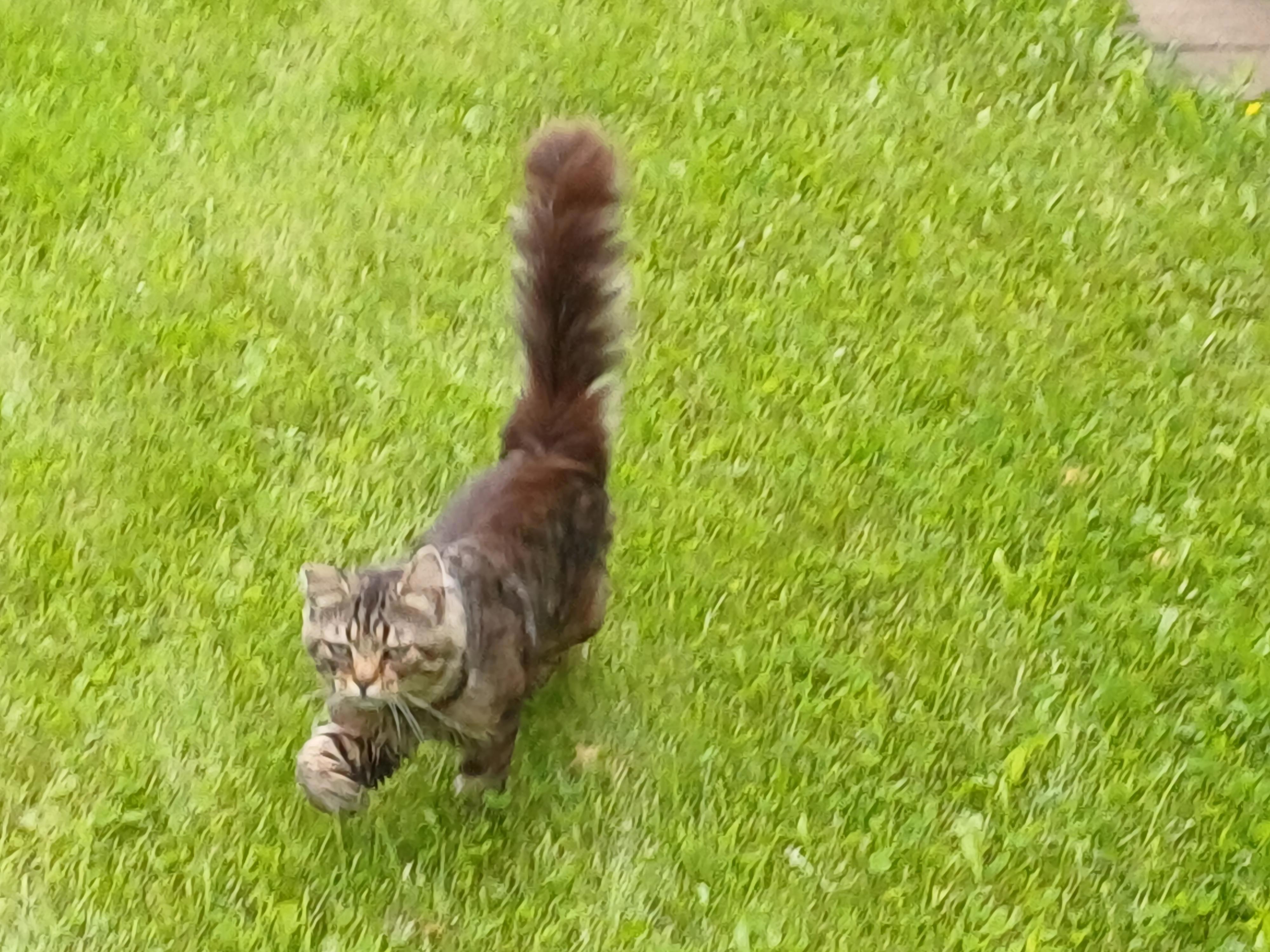 А также прибежал незнакомый Серый - раньше его тут не видели: