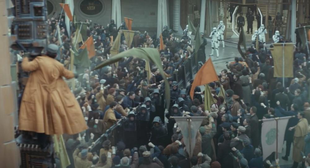 Первая треть второго сезона - это разгон, далее уже начинается самое интересное. С первым сезоном было точно так же, когда после неторопливого старта начался эпик. Если в первом сезоне эпизод, который у меня лично возымел большой эмоциональный отклик, был сценой побега из имперской тюрьмы, то во втором таким эпизодом стал силовой разгон митинга на Гормане. Началось всё точно так же, как бывало нередко в реальном мире, достаточно вспомнить уроки истории. Для поддержания порядка поставили вооружённых людей, а потом снайпер одного из них убил. Вот только снайпер - не сторонник демонстрантов, он из тех же вояк, что и застреленный бедолага. Свой убил своего ради политических целей властей.