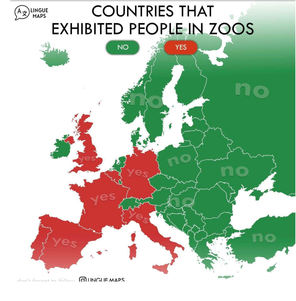 ↑ Страны, в истории которых была практика показа людей в зоопарках (негров, индейцев , папуасов и т.п.)