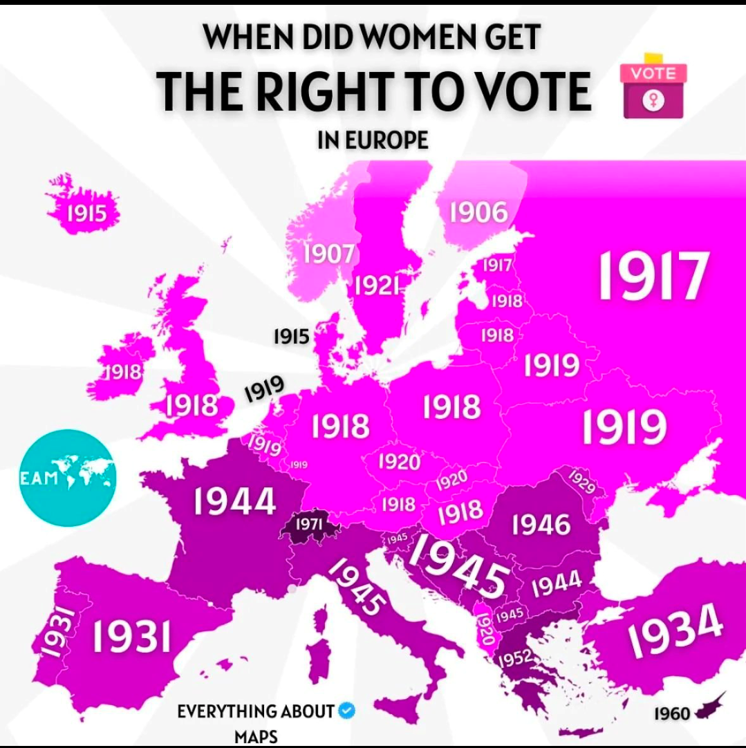 ↑ Годы, в которые женщины в разных европейских странах получили избирательные права.