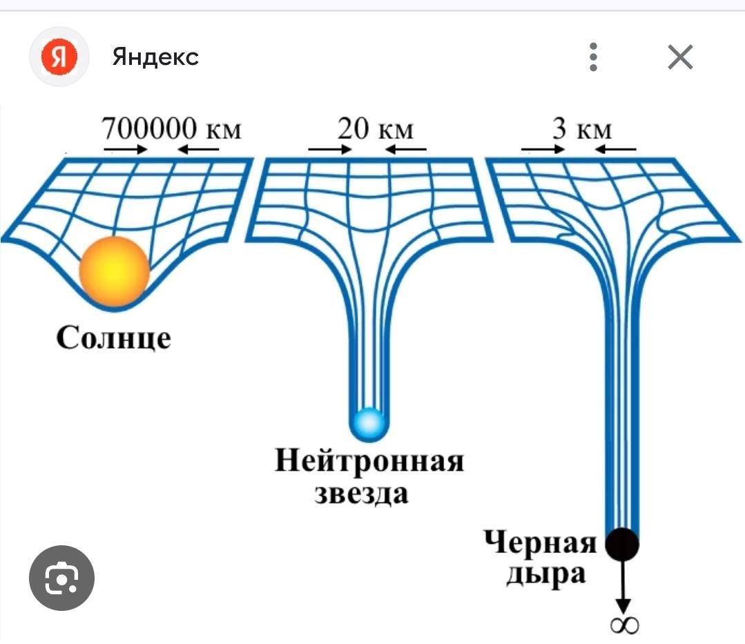 Условная "ткань" пространства-времени искревляется под воздействием массивных объектов(привожу примитивную иллюстрацию)