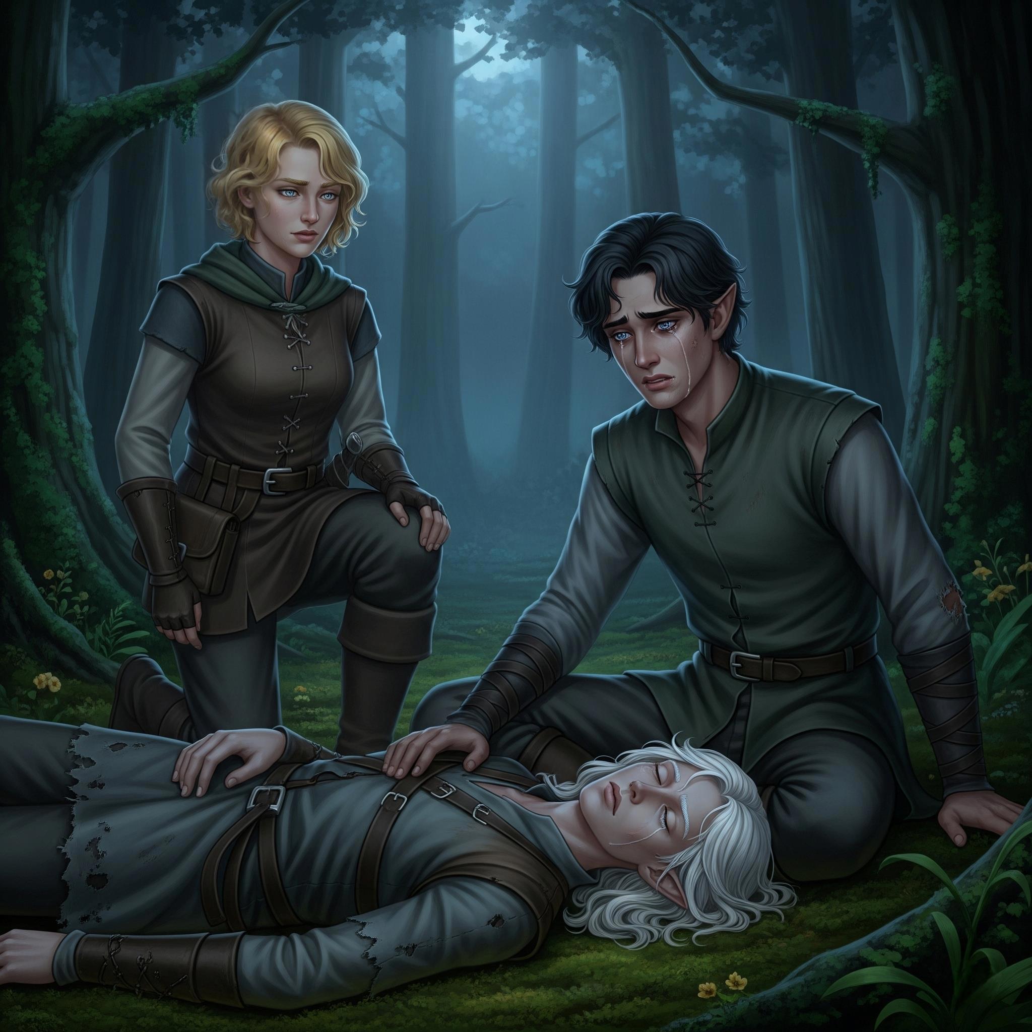 Это и вправду был фэйри. Странно, но за две недели тлен не тронул его лица. Он выглядел, словно изваяние из мрамора. Его кожа была невероятно светлой, почти прозрачной. Бледные губы сливались с кожей, но сохраняли четкость формы, придавая чертам странную хрупкость.
