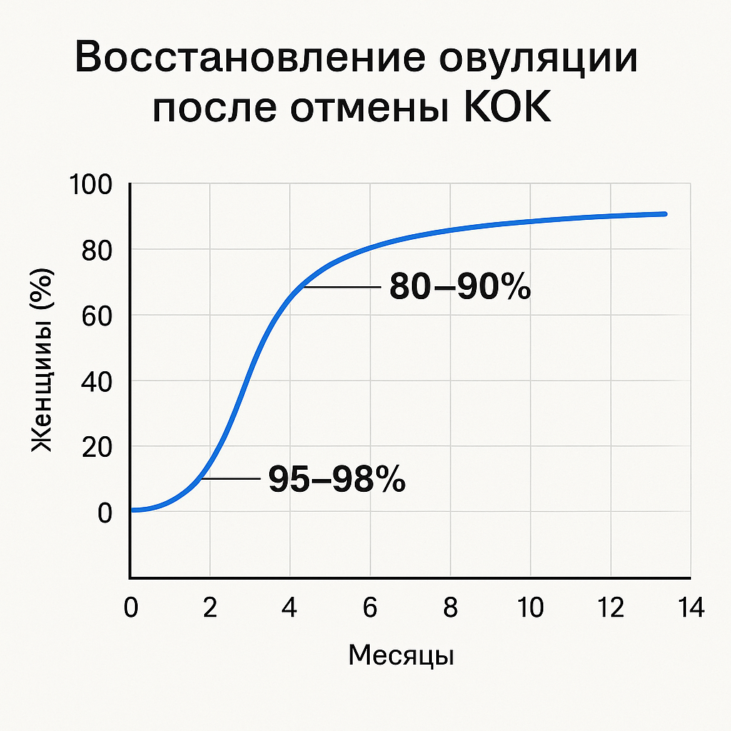 Все эти эффекты полностью обратимы. После прекращения приёма КОК организм возвращается к естественному ритму, а овуляция и фертильность восстанавливаются — чаще всего в течение 1–3 месяцев.