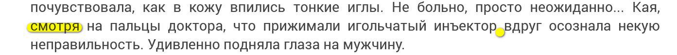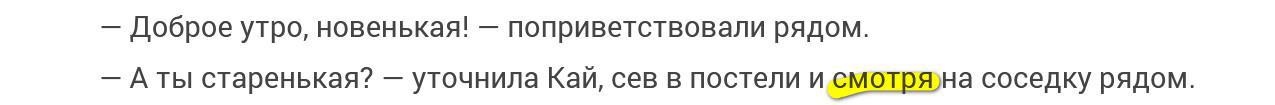 Автор почему-то очень не любит слово "глядя" и заменяет его на "смотря":