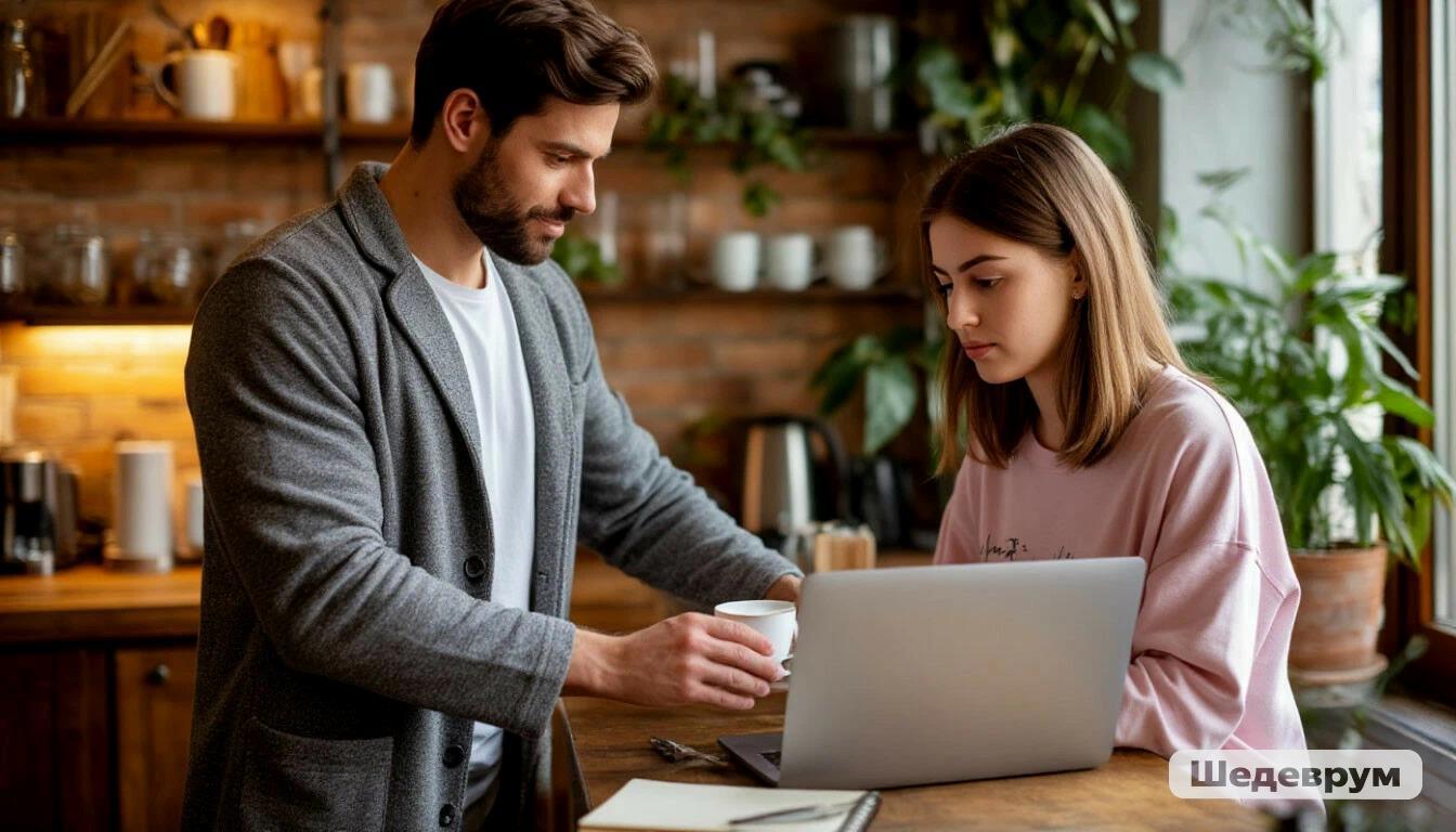 Первое - чашку кофею, бодрящего, что наливает любимая женщина творца.