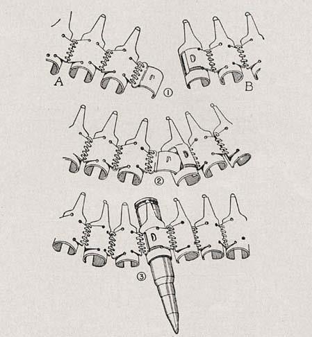 Секции на 25 или 50 патронов соединялись между собой с помощью патрона. Протяжка к ленте крепилась таким же образом. Соединение секций ленты между собой