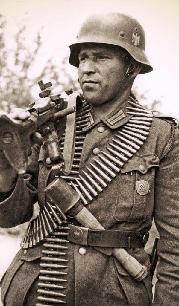 Хорват-союзник с пулеметом и лентами - типовой способ ношения. Похоже, что в конец ленты вставлено несколько трассирующих патронов.